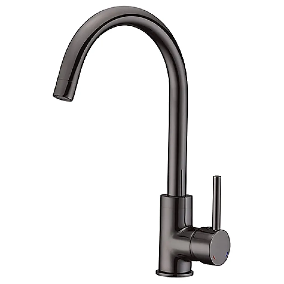Mitigeur de cuisine EDOUARD ROUSSEAU Køben avec finition canon de fusil brillante (PVD) pour une esthétique moderne. Col de cygne haut offrant 214 mm sous bec pour plus de confort. Installation monotrou avec perçage 35 mm, compatible avec la plupart des éviers. Corps en métal robuste, poids 1560 g. Économie d’eau intégrée. Hauteur totale 334 mm, profondeur 188 mm. Garantie 2 ans.