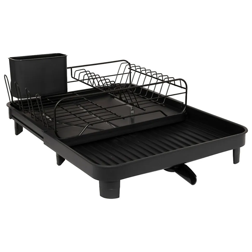Même un égouttoir peut être design et apporter un plus à la décoration de votre cuisine, c’est le cas de l’égouttoir à vaisselle extensible noir.Il vous permettra de sécher assiettes et couverts en s’adaptant à votre besoin de place.Informations sur l’égouttoir à vaisselle extensible noir:Dimensions : L. 42 cm x Profondeur de 34 à 55cm selon vos besoins x H. 21 cmPlateau drainant avec rigole d’évacuation de l’eauExtensible pour un gain de placeRange couverts compartimentéCapacité assiettes : 9Capacité verres : 4Matières : Polypropylène et acierPoids : 1.414 Kg