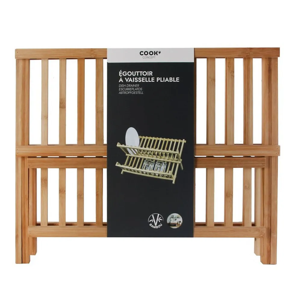 Cet égouttoir à vaisselle pliable est entièrement fabriqué en bambou. Il vous aidera à sécher votre vaisselle tout en contribuant au développement durable!Informations sur l’égouttoir à vaisselle :PliantDimensions : L. 33 x P. 40.3 x H. 24 cmMatières : BambouPoids : 712 gr
