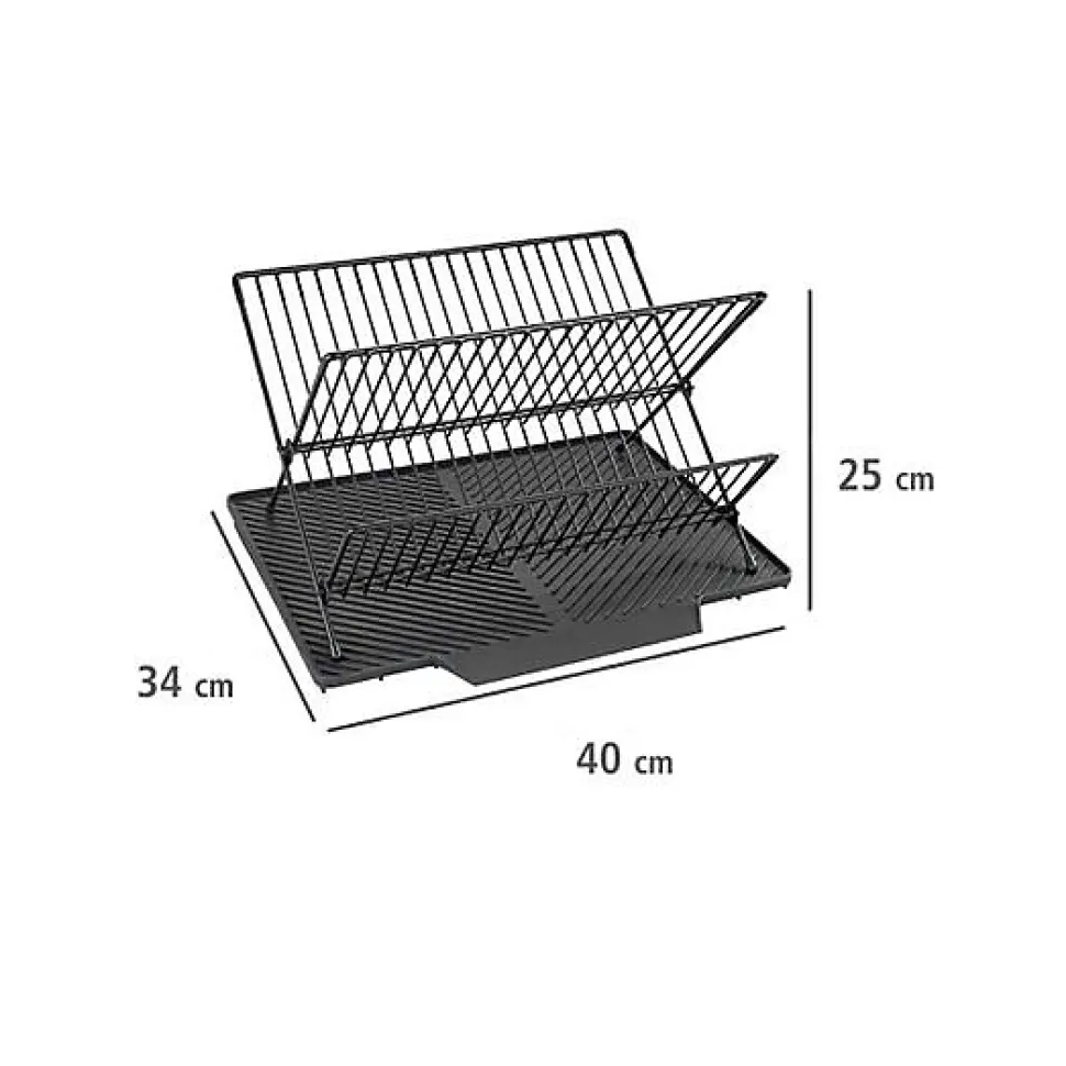 > Repliable > Tapis d’égouttage inclus > Surface pour assiettes et verres > Dimensions (LxHxP) : 40x25x34cm