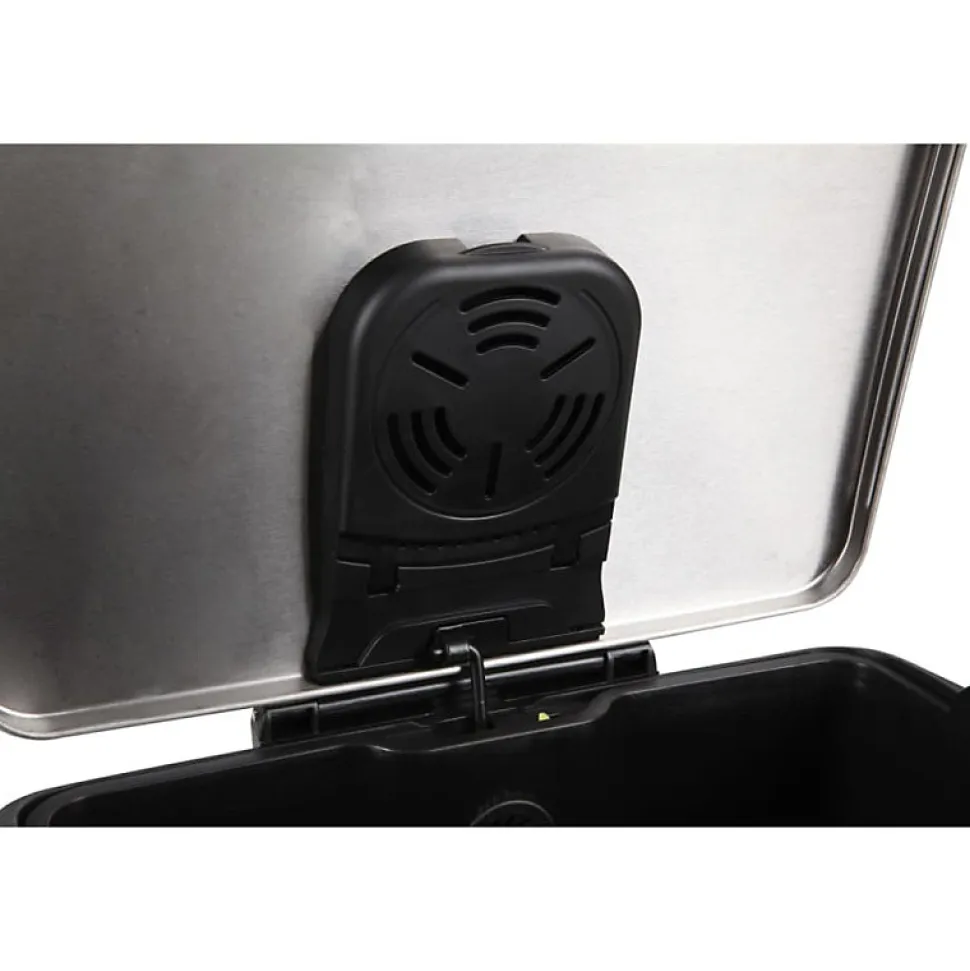 La poubelle à pédale E-Cube noire mate de la marque EKO est une poubelle rectangulaire élégante avec une pédale extra large et un seau intérieur en plastique de 50 L. Elle est équipée d’un couvercle à fermeture silencieuse et d’une fonction de maintien du couvercle en position ouverte pour faciliter le changement du sac poubelle. Cette poubelle à pédale est fabriquée en acier inoxydable brossé et possède un revêtement ingénieux résistant aux empreintes digitales. Il y a aussi un compartiment pour filtre à charbon actif qui absorbe les odeurs dans le couvercle. Cette poubelle est une solution de confinement des déchets idéale pour toute cuisine moderne.