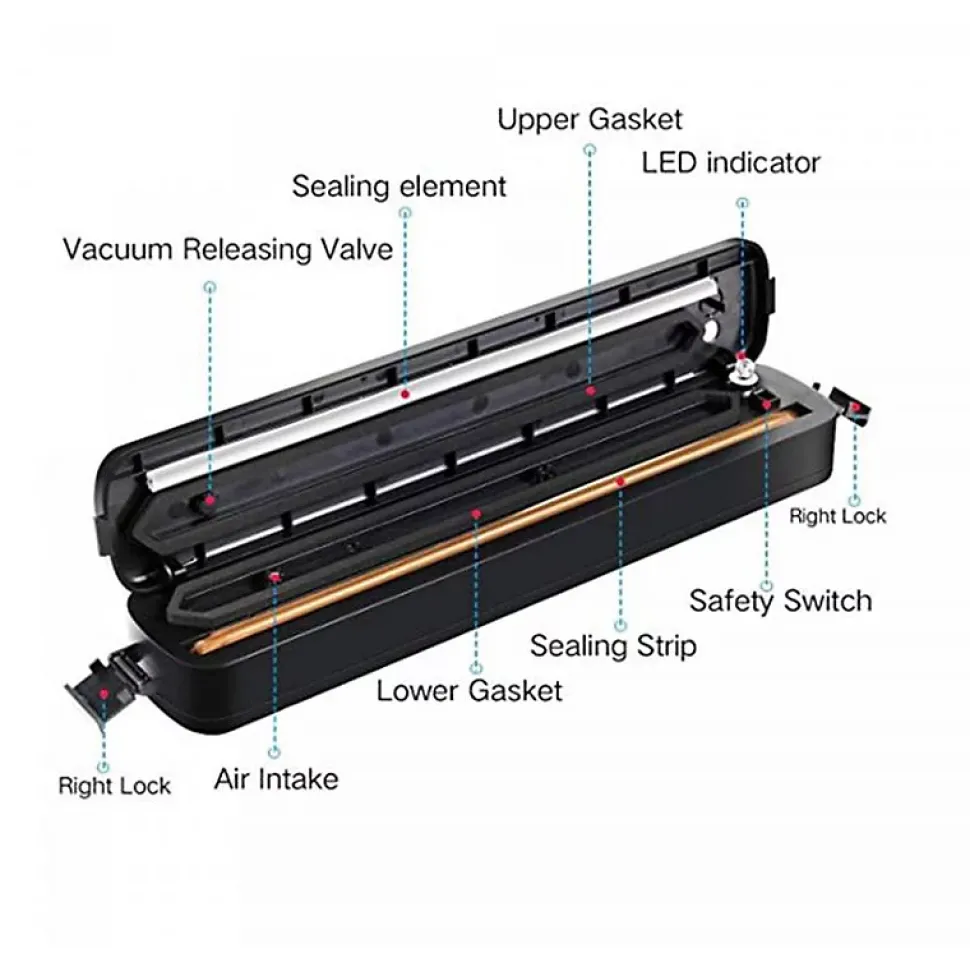 Le mode de scellage sous vide automatique à une touche et le mode de scellage manuel del’appareil Herzberg HG8103 sont parfaits pour l’emballage sous vide et l’emballage SEAL engénéral. Même les aliments moelleux peuvent être parfaitement scellés en combinant les deuxmodes.Caractéristiques :Mode de scellage sous vide automatique à une toucheÉlimine les brûlures de congélationFacile à utiliserréduit la détérioration des alimentsPortable et compactFacile à utiliserÉconomie d’énergieAnti-humiditéPeut garder vos aliments fraisPeut être utilisé pour les aliments secs et humidesSpécification:Nom de marque : HerzbergCouleur : NoirLED : OuiHauteur : 34,50 cmLargeur : 6,48 cmLongueur : 3.99 cmContenu:1 x Scelleuse sous vide