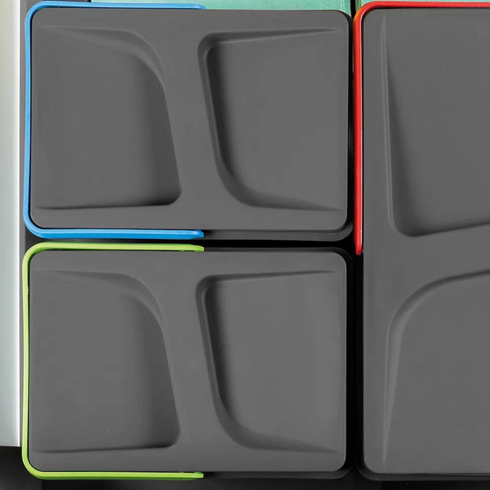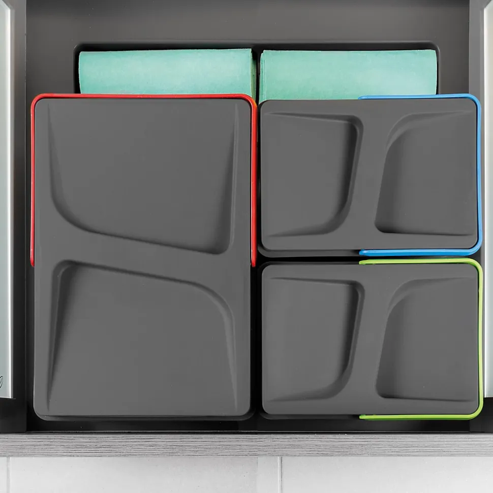 Le kit Emuca 8935723 révolutionne le rangement des déchets avec ses poubelles encastrables pour tiroir de cuisine, combinant ergonomie, durabilité et modularité. Facile à nettoyer et à extraire grâce à ses anses colorées, il offre une solution discrète et efficace pour le tri sélectif.