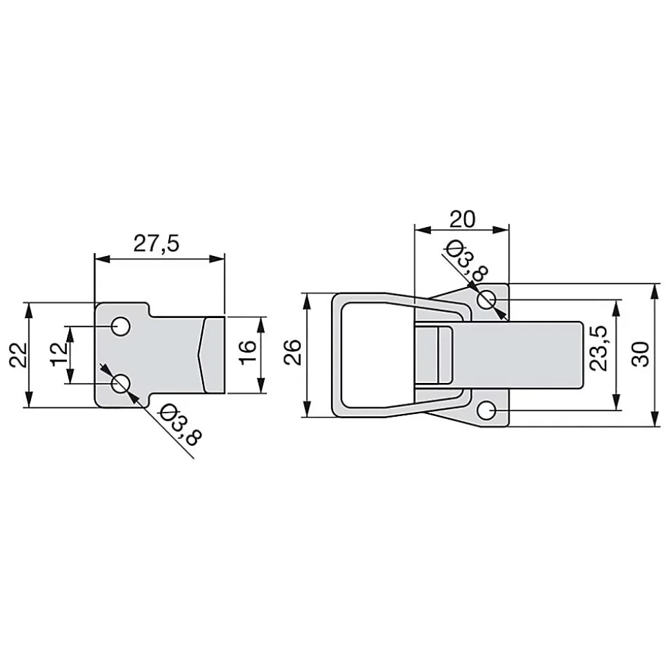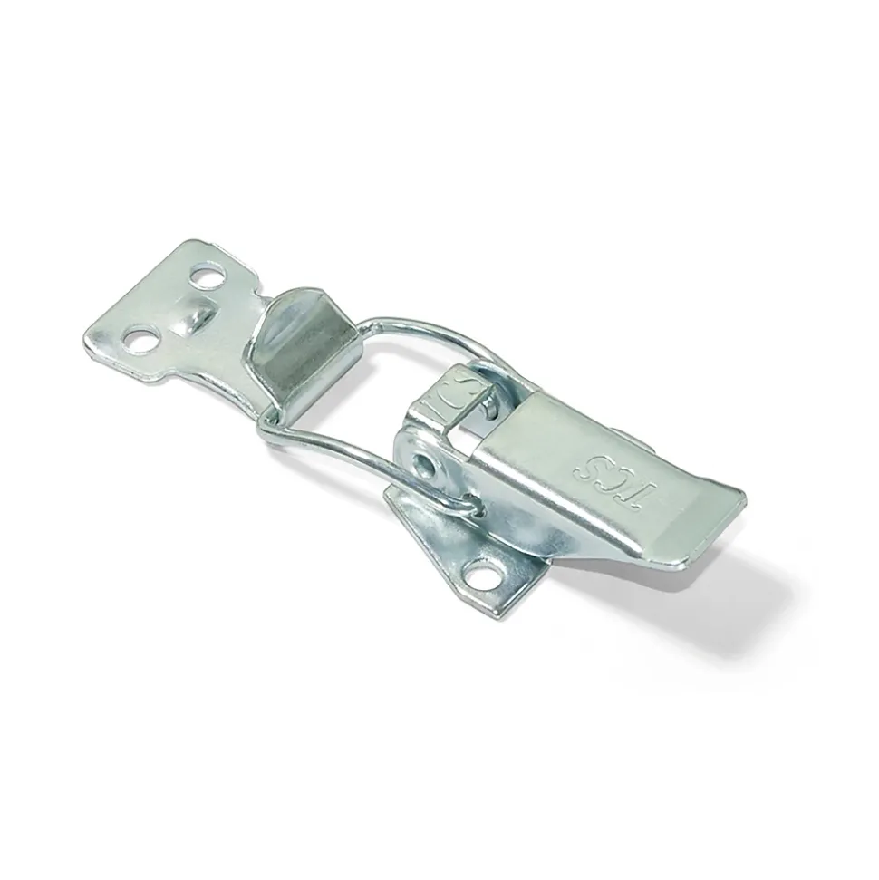 Lot de 10 fermetures à levier pour meubles en acier zingué, permettant une fixation mécanique avec tenseur réglable pour un maintien sécurisé des panneaux. Installation vissée avec distance d’installation de 52 mm. Produit robuste, facile à installer et durable.