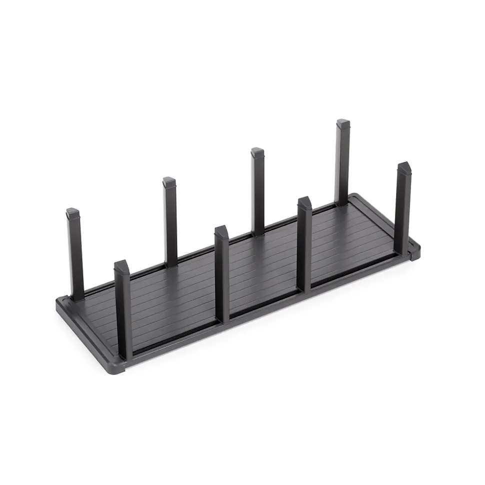 Le porte-assiettes vertical Orderbox vous permet de garder votre cuisine bien rangée et organisée, en économisant du temps et d’espace. C’est une excellente option pour ceux qui cherchent à garder les plats organisés et en sécurité dans les tiroirs. Ses dimensions de 159×468 mm lui permettent de s’adapter à la plupart des tailles de tiroirs de cuisine. Avec cette capacité, il est possible de placer deux colonnes de plats superposés, ce qui optimise l’espace de stockage disponible. Les séparateurs réglables vous permettent d’organiser vos plats en fonction de leur taille et de leur forme, en les empêchant de glisser et de se casser. Fabriqué en aluminium et plastique ABS, avec une élégante couleur gris anthracite et un design moderne et minimaliste.