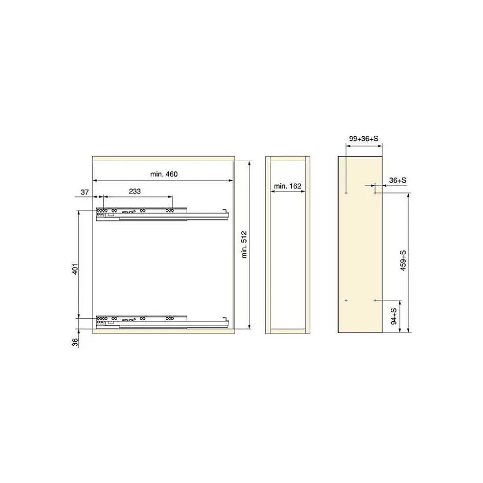 - Glissières renforcées pour charge jusqu’à 15kg