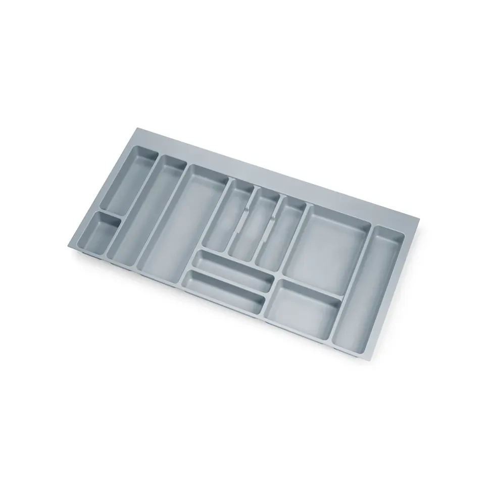 Range-couverts de 936x482mm dimensionné pour tiroirs de module de largeur 1.000 mm.Convient pour des profondeurs de tiroirs comprises entre 450 mm et 500 mm avec des épaisseurs de planches comprises entre 16 mm et 19 mm.Découpable pour s’adapter à des profondeurs entre 418 mm et 482 mm et des largeurs entre 900 mm et 936 mm.Plateau à couverts avec 12 compartiments pour couteaux, cuillères, fourchettes et tous types de couverts. Pour stocker et organiser les couverts dans le tiroir de la cuisine.Fabriqué en plastique gris. VOIR LES MESURES DU PRODUIT DANS LES IMAGES. Range-couverts pour tiroirs universels de la cuisine, à lignes droites et grande capacité de stockage pour les couverts et autres ustensiles de la cuisine, qui permet de profiter au maximum de l’espace. Comme ils sont recoupables, il peuvent être adaptés pour installation dans les tiroirs pour modules de largeur standard entre 400 mm et 900 mm, de profondeur entre 450 mm et 500 mm avec de panneau d’épaisseurs comprises entre 16 mm et 19 mm selon le modèle sélectionné.