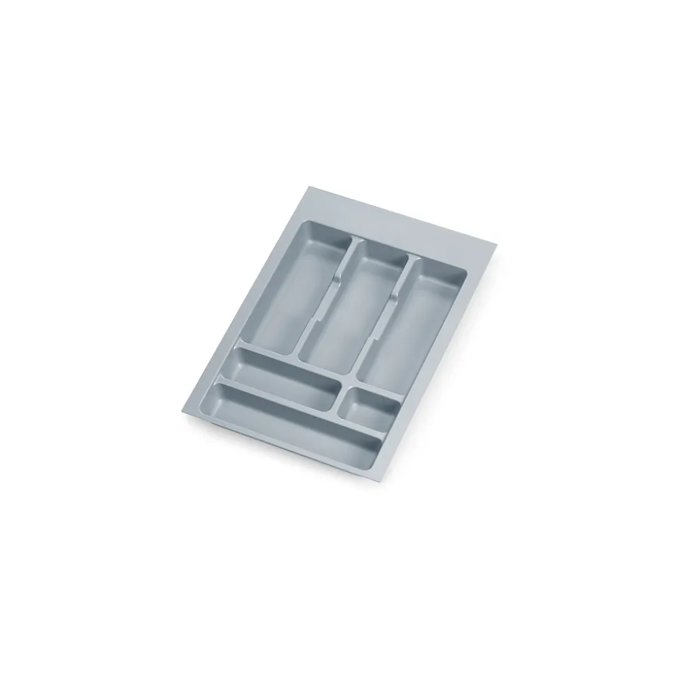 Range-couverts de 336x482mm dimensionné pour tiroirs de module de largeur 400 mm.Convient pour des profondeurs de tiroirs comprises entre 450 mm et 500 mm avec des épaisseurs de planches comprises entre 16 mm et 19 mm.Découpable pour s’adapter à des profondeurs entre 418 mm et 482 mm et des largeurs entre 300 mm et 336 mm.Plateau à couverts avec 6 compartiments pour couteaux, cuillères, fourchettes et tous types de couverts. Pour stocker et organiser les couverts dans le tiroir de la cuisine.Fabriqué en plastique gris. VOIR LES MESURES DU PRODUIT DANS LES IMAGES. Range-couverts pour tiroirs universels de la cuisine, à lignes droites et grande capacité de stockage pour les couverts et autres ustensiles de la cuisine, qui permet de profiter au maximum de l’espace. Comme ils sont recoupables, il peuvent être adaptés pour installation dans les tiroirs pour modules de largeur standard entre 400 mm et 900 mm, de profondeur entre 450 mm et 500 mm avec de panneau d’épaisseurs comprises entre 16 mm et 19 mm selon le modèle sélectionné.