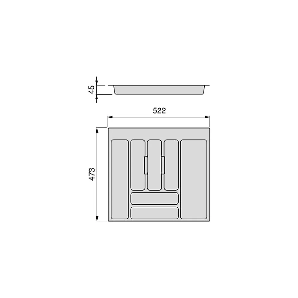 Dimensionné pour les tiroirs Vertex et Concept de 500 mm de profondeur et 16 mm.Pour une largeur de module de 600 mm.Dimension 522 mm de largeur et 473 mm de profondeur.Grande capacité de stockage pour les couverts et autres ustensiles de la cuisine.En plastique gris anthracite. VOIR LES MESURES DU PRODUIT DANS LES IMAGES. Porte-couverts pour tiroirs de cuisine avec un design droit et une grande capacité de rangement pour les couverts et autres ustensiles de cuisine, tirant le meilleur parti de l’espace. Il est fabriqué en plastique et son installation est extrêmement rapide et facile.