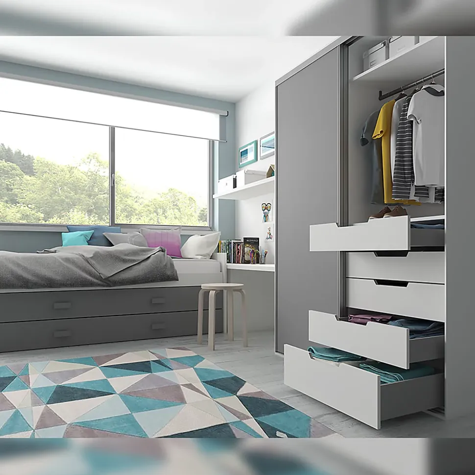 Kit de ferrures nécessaires pour le montage d’un tiroir extérieur de hauteur 138 mm et profondeur 300 mm, n’incluant pas le fond, la façade ni la façade arrière. Contient les coulisses à sortie totale, un jeu de côtés, un jeu de fixations arrière et un jeu de fixations frontales pour tiroir extérieur. Les coulisses, à extraction totale et fermeture amortie, offrent une capacité de charge maximum de 30 kg. Fabriquées en acier peint gris anthracite. VOIR LES MESURES DU PRODUIT DANS LES IMAGES. Le tiroir de cuisine et salle de bain Concept est disponible en kit avec toutes les ferrures nécessaires pour le montage et offre une grande capacité de charge, jusqu’à 30 kg par tiroir. Le kit contient les coulisses à sortie totale et fermeture amortie , un jeu de fixations et un jeu de côtés , disponibles en finition blanc ou gris anthracite. Vous n’aurez qu’à ajouter les panneaux pour le fond, la façade arrière et la façade du tiroir, avec les dimensions correctes.