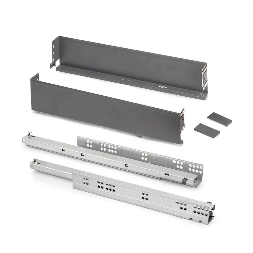 Le tiroir Simplex avec côtés métalliques est une solution simple et polyvalente, idéale pour meubles de cuisine, salle de bain ou maison, sans usinage spécial. Design élégant, grand volume intérieur, finition moderne, réglable en vertical et horizontal. Coulisse Silver L à extraction totale, fermeture amortie, capacité 25 kg, mouvement fluide et stable. Kit complet inclus. Fabriqué en acier avec finition gris anthracite.