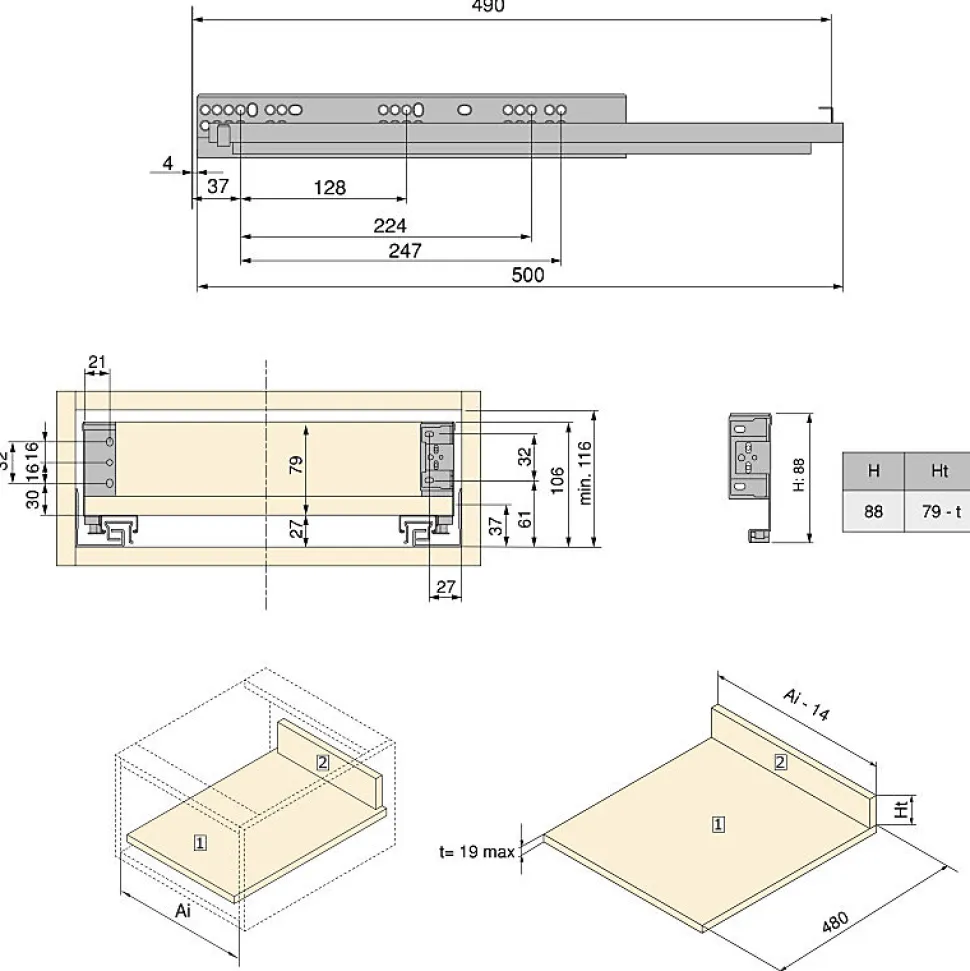 Le tiroir Simplex avec côtés métalliques est idéal pour les meubles de cuisine, salle de bain et maison, sans nécessiter d’usinage spécial.Il a une hauteur de 88 mm avec un design élégant, pour tiroirs d’une profondeur de 490 mm, offrant un grand volume intérieur et une finition moderne.Permet le réglage de la façade de ±2 mm en vertical grâce à une excentrique et ±1,5 mm en horizontal, avec réglage en hauteur grâce aux coulisses Silver L à extraction totale et fermeture amortie.Offre une capacité de charge de 25 kg, garantissant résistance et fluidité dans le mouvement.Fabriqué en acier avec une finition gris anthracite. VOIR LES MESURES DU PRODUIT DANS LES IMAGES. Le tiroir Simplex avec côtés métalliques est la solution la plus simple et la plus polyvalente pour disposer d’un tiroir à côtés métalliques dans des meubles de cuisine, salle de bain ou maison, sans nécessiter d’usinage spécial.Avec un design élégant et une hauteur de 88 mm, il offre un grand volume intérieur et une finition moderne. Son système permet le réglage de la façade du tiroir de ±2 mm en vertical grâce à une excentrique et de ±1,5 mm en horizontal. Il intègre également la coulisse Silver L à extraction totale, avec fermeture amortie et une capacité de charge de 25 kg, garantissant un mouvement fluide et stable.Le kit comprend deux côtés latéraux, un jeu de caches frontaux, un jeu de coulisses et les vis pour fixer le panneau avant. Il est fabriqué en acier avec une finition peinte gris anthracite ou blanc.