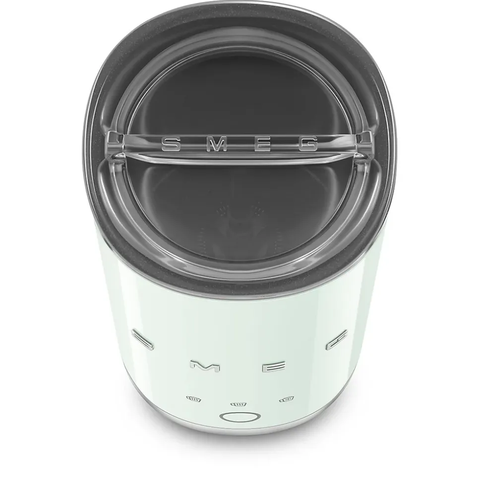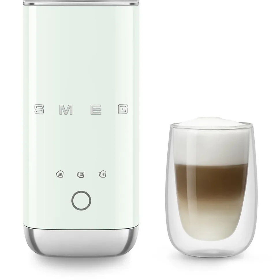 Emulsionneur de lait 500w 0.12 / 0.18l vert Smeg – Emulsionneur de lait Année 50 MFF02PGEU de SmegMousseur à lait électrique et facile à utiliser pour réaliser une mousse de lait crémeuse, chaude ou froide.Trois fonctions : lait chaud, mousse de lait chaude et mousse de lait froide pour préparer une grande variété de boissons.Revêtement antiadhésif en céramique et fouet amovible pour un nettoyage facileUn seul bouton multifonction pour préparer vos boissons. – Type de produit : Emulsionneur de lait.Esthétique : Années 50.Type : Mousseur à lait électrique.Puissance moteur : 500 W.Capacité minimum : 60 ml.Capacité maximale de moussage du lait : 120 ml.Capacité maximale de chauffage du lait : 180 ml.Tension : 220-240 V.Fréquence : 50 / 60 Hz.Power off activation time : 1 min.Product off power : 0.1 W.Longueur du câble d’alimentation : 60 cm.Type de commandes : Bouton.Base antidérapante : Oui.Arrêt automatique : Oui.Matériau du corps : Plastique.Body internal coating : Ceramic.Matériau du couvercle : Plastique.Couleur de la base : Chromé brillant.Matériau de la base : Plastique.Couleur du câble d’alimentation : Gris.Fonction lait chaud : Oui.Cold milk Foam function : Oui.Hot milk Foam function : Oui.Couleur : Vert.Dimensions (mm) : 200 x 93 x 93.Poids (kg) : 0.84.