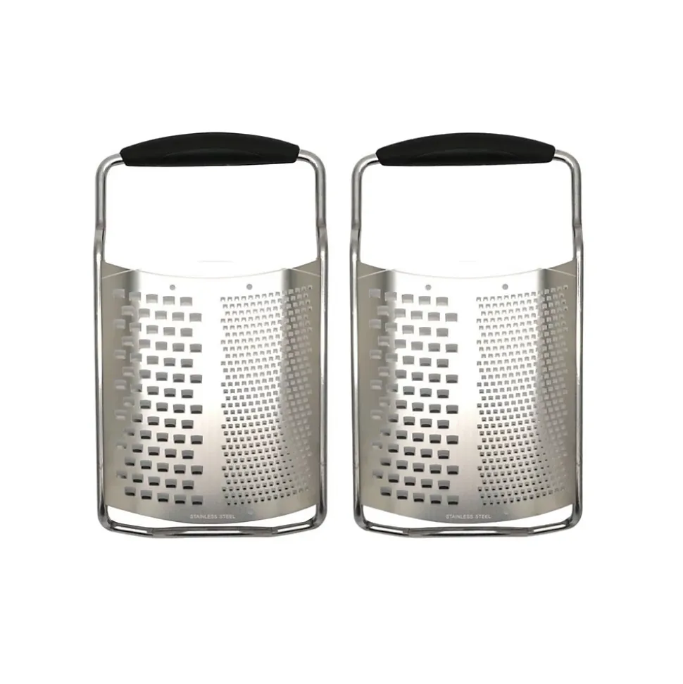 - DESCRIPTION: Lot de 2 râpes à fromage Fackelmann en inox, parfaites pour fromages et légumes avec deux tailles de découpe