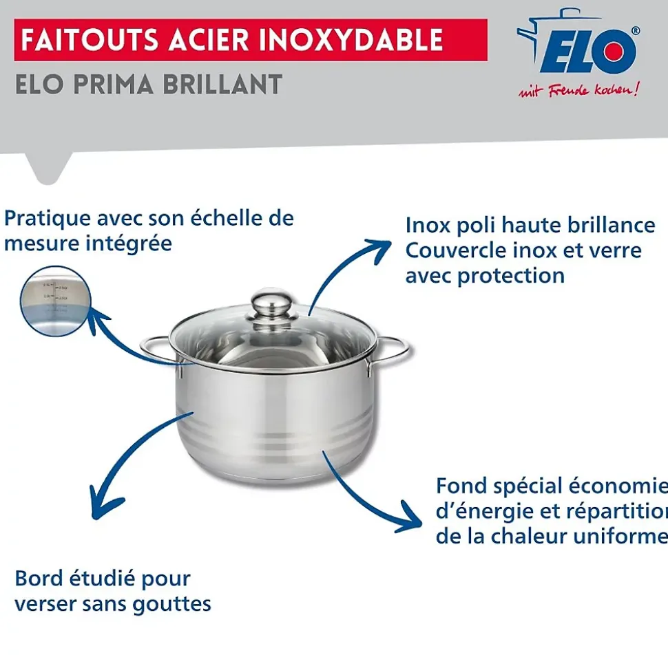 Découvrez l’ensemble de 3 poêles de cuisson et 1 faitout Elo Prima Brillant, un ensemble de cuisine essentiel pour tous les amateurs de gastronomie. Composé de poêles de 20, 24 et 32 cm, cet ensemble offre une polyvalence inégalée pour préparer une multitude de plats, des sautés rapides aux sauces délicates. Grâce à leur conception en aluminium et leur revêtement en céramique sans PFAS, ces poêles garantissent une cuisson saine, tout en étant ultra résistantes et anti-adhésives pour un nettoyage facile.Le faitout de 24 cm en inox, robuste et élégant, est parfait pour mijoter des plats savoureux comme des ragoûts ou des soupes. Sa construction en inox assure une répartition homogène de la chaleur, parfait pour des résultats de cuisson optimaux. L’ensemble convient à toutes les sources de chaleur, y compris l’induction, ce qui le rend idéal pour une cuisine moderne.Les poêles et le faitout sont conçus pour résister à l’épreuve du temps, offrant une robustesse qui vous accompagnera dans vos aventures culinaires. Que vous soyez un chef en herbe ou un cuisinier expérimenté, cet ensemble répondra à tous vos besoins en cuisine, vous permettant de concocter des mets délicieux tout en profitant d’une expérience de cuisson confortable et efficace. Transformez votre cuisine avec ce lot de qualité supérieure qui allie performance et élégance.