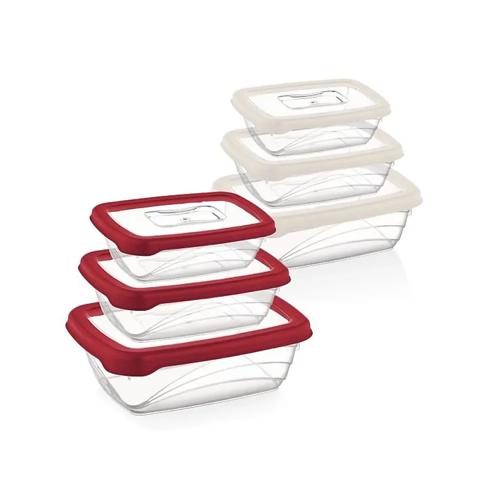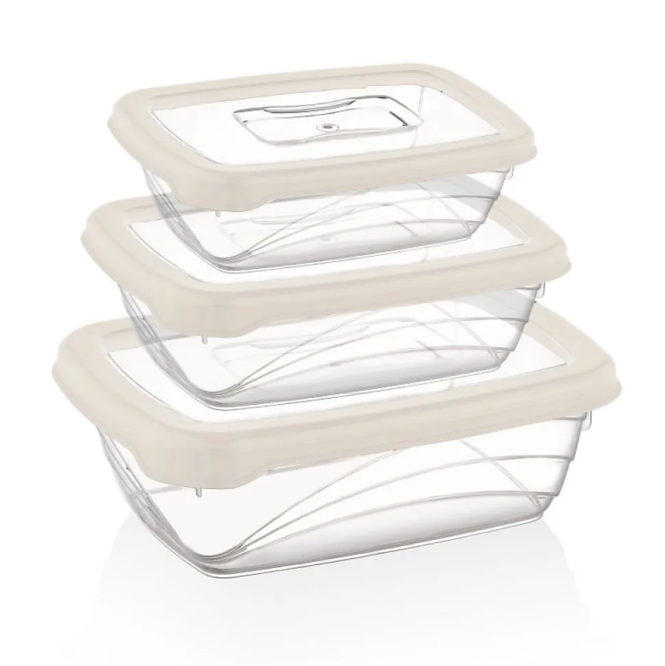 Solution de stockage tout-en-unConteneurs de stockage qui s’emboîtent commodément ensembleLe système de verrouillage unique est testé en termes de durabilité pour des performances durablesLe système de verrouillage amélioré est hermétique pour garder les aliments frais plus longtempsSans BPA pour une conservation saine des alimentsCouvercles en silicone aux couleurs vivesLes contenants vont au congélateur et au lave-vaisselle3 tailles de conteneurs et couvercles de couleur assortieLe joint en silicone amélioré est 100 % étanche à l’airGarde les aliments frais plus longtempsIl est étanche pour éviter les gouttes et les déversements indésirables.1900 ml (25 x 17,8 x 8,2 cm)3200 ml (28,6 x 20,5 x 9,7 cm)1200 ml (20 x 14,5 x 6,5 cm)