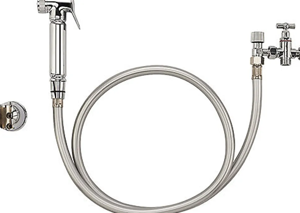 Ensemble douchette WC en laiton, support, robinet et flexible PVC