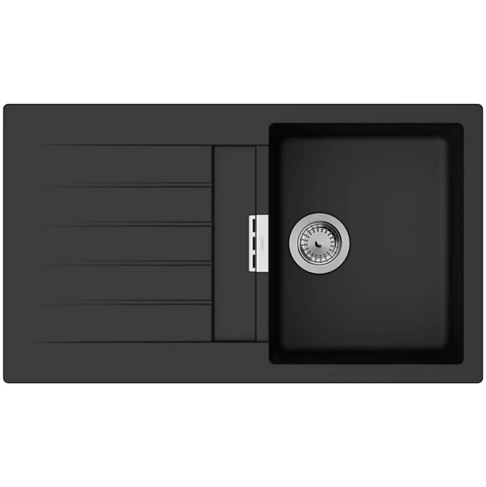 Avantages du produitHaute qualité : En Silicatec, cet évier est insensible à la chaleur et aux produits ménagers agressifs.Gain de place : Pose par dessous, il est encastrable dans tout type de plan de travail et permet un gain de place dans votre cuisine.Réversible : L’égouttoir peut se placer à droite ou à gauche selon votre convenance.Vidage inclus : Equipé d’un vidage manuel intégré.Gamme spécifique : Votre évier fait partie de la Gamme « in touch with our planet » de la marque HANSGROHE qui vise à fortement limiter l’impact environnemental de ses produitsFabriqué en Allemagne : Les produits fabriqués en Allemagne sont réputés pour leur qualité exceptionnelle et leur durabilité. Les normes de fabrication élevées garantissent des produits fiables et robustes. Caractéristiques techniquesGamme : MilieuPays d’origine : AllemagneMatériau : Quartz – SilicatecColoris : Noir graphiteInstallation : A encastrerRéversibilité : Oui (égouttoir réversible)Accessoires inclus : Vidage manuel inclusAccessoires optionnels : Aucun DimensionsLongueur : 84 cmLargeur : 48 cm