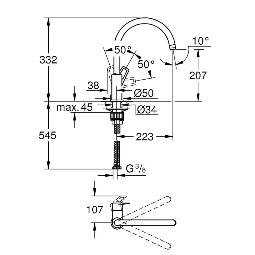 Points forts : Fabriqué en céramique haut de gammeFinesse et contours précisRésistance maximale aux chocs et aux rayuresCouleur qui résiste à la lumière et au tempsGrande facilité de nettoyage sur toute la surface Type de pose : évier pour encastrement par recouvrementEvier reversibleNombres de cuves : 2Garantie 2 ans Caractéristiques :Dimensions (L x l) : 116 x 51 cmEvier 2 bacsMeuble sous evier : 50 cmDécoupe du plan de travail : 83 x 48 cm2 trous percésEvier réversibleVendu avec vidage automatique Siphon 94060000 en option Points forts :Innovation Grohe Zero : conduit d’eau isolé afin d’éviter la présence de plomb et le nickelBec pivotant : permet d’optimiser la totalité de l’évierMécanisme ultra précis et durableGarantie : 5 ans Caractéristiques techniques du mitigeur :Type d’installation : Mitigeur cuisine monotrouZone de rotation de 360 °StarLight, technologie Grohe : revêtement tout chrome éclatant et ultra résistant à la corrosion et au calcaireGrohe Zero, technologie : conduit d’eau isolé – sans plomb ni nickelMécanisme Longlife, technologie Grohe : cartouche en céramique 28 mm de haute qualitéBec mousseur intégréLivré avec flexibles de raccordement souplesHauteur sous bec : 20,7 cmHauteur maximale du mitigeur de cuisine en cm : 33,2 cmProfondeur en cm : 22,3 cmRéférence : 31368001 Pour plus d’information, pensez à consulter la fiche technique du produit.