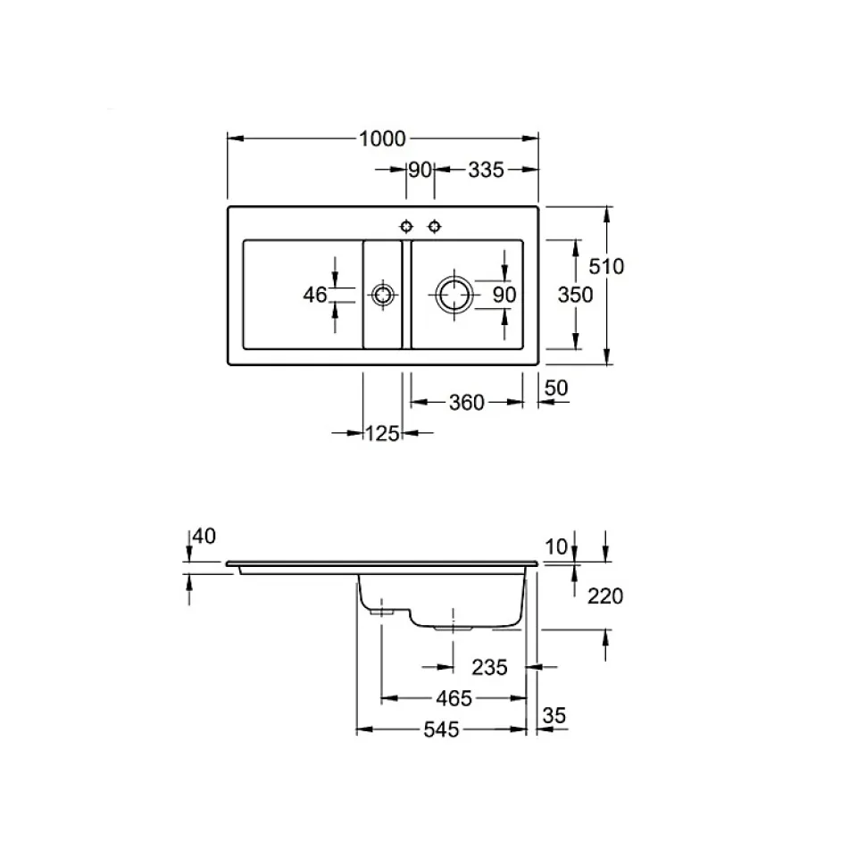 Points fortsDesign épuréÉviers en céramique de haute qualité composés de matières premières 100 %sMatières premières 100 %sExcellente résistance aux chocs et aux rayures et très faible risque de détériorationSurfaces parfaitement étanches pour un nettoyage facile et des surfaces hygiéniquesCaractéristiques de l’évier 1 cuve 1/2 Subway Pure 60Évier à encastrer par-dessusCéramiqueEgouttoir à gaucheÉvier non réversible1 Cuve 1/2Dimensions : 1000 x 510 mmDécoupe du plan de travail : 97 x 48 cmDimension minimale du meuble sous évier: 60 cm2 trous percésEvier vendu sans vidage