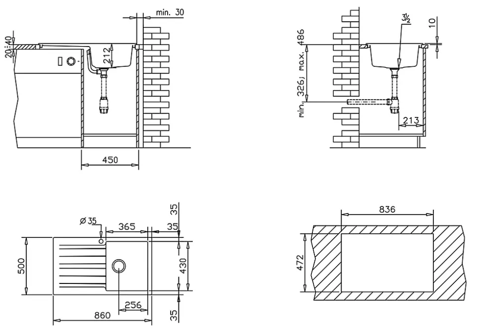 L’évier Sierra est simple, épuré, design et vous offre une résistance aux chocs et températures jusqu’à 230°. Composé d’une cuve et d’un égouttoir en résine noire, il est facile à poser et réversible. DESIGN ET QUALITE : Produit : Evier Matière : Résine (combiné de fibre de verre et de résine de synthèse résistant aux chocs) Couleur : Noir Type de produit : 1 cuve + 1 égouttoir Type de montage : A poser (dans un caisson de 45cm de largeur minimum) Résistance : Jusqu’à 230°c sans marquer Réversible : Oui Prémarquage : Oui (double trous) Option d’évacuation : Siphon avec raccord pour lave-vaisselle et machine à laver inclus Kit de fixation : Inclus avec pattes de fixation Vidage : Automatique avec trop-plein inclus (bonde à panier pour filtrage de résidus fournie) Notice d’installation : Incluse dans l’emballage DIMENSIONS: – Longueur : 860mm – Largeur : 500mm – Profondeur : 212mm – Côtes d’encastrement (en cm) : 83,6 L x 47,2 H – Dimensions de la grande cuve ( en cm) : 36,5 L x 43 l x 21,2 P – Diamètre évacuation : 90mm NORMES : Certification ACS : Accréditation de Conformité Sanitaire. GARANTIE : Evier : 15 ans Pièces détachées : Pas de garantie Conseils d’installation : 1 – Découper le plan de travail aux dimensions d’encastrement (respecter les côtes sur le dessin) 2 – Déposer l’évier pour qu’il puisse s’encastrer dans le plan de travail Conseils d’entretien : – Il est conseillé de nettoyer le produit avec une solution savonneuse (type liquide vaisselle), ne jamais utiliser de substances acides ou abrasives. Les tâches de calcaire peuvent être évitées en séchant la robinetterie après son utilisation – Rincer à l’eau claire – Utiliser un chiffon doux – Eviter d’utiliser des produits abrasifs: détergent et solvants