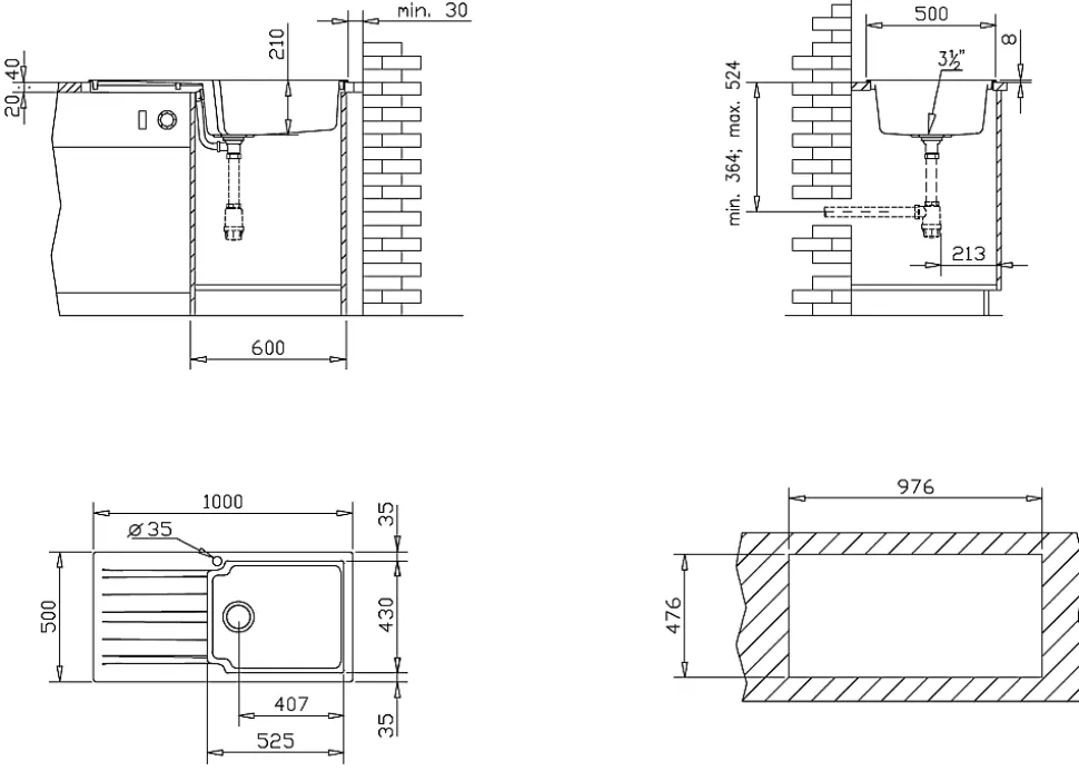 L’évier Sierra est simple, épuré, design et vous offre une résistance aux chocs et températures jusqu’à 230°. Composé d’une cuve et d’un égouttoir en résine noire, il est facile à poser et réversible. DESIGN ET QUALITE : Produit : Evier Matière : Résine (combiné de fibre de verre et de résine de synthèse résistant aux chocs) Couleur : Noir Type de produit : 1 cuve + 1 égouttoir Type de montage : A poser (dans un caisson de 60cm de largeur minimum) Résistance : Jusqu’à 230°c sans marquer Réversible : Oui Prémarquage : Oui (double marquage) Option d’évacuation : Siphon avec raccord pour lave-vaisselle et machine à laver inclus Kit de fixation : Inclus avec pattes de fixation Vidage : Standard avec trop-plein inclus (bonde à panier pour filtrage de résidus fournie) Notice d’installation : Incluse dans l’emballage DIMENSIONS: – Longueur : 1000mm – Largeur : 500mm – Profondeur : 210mm – Côtes d’encastrement (en cm) : 97,6 L x 47,6 H – Dimensions de la grande cuve ( en cm) : 52,5 L x 43 l x 21 P – Diamètre évacuation : 90mm NORMES : Certification ACS : Accréditation de Conformité Sanitaire. GARANTIE : Evier : 15 ans Pièces détachées : Pas de garantie Conseils d’installation : 1 – Découper le plan de travail aux dimensions d’encastrement (respecter les côtes sur le dessin) 2 – Déposer l’évier pour qu’il puisse s’encastrer dans le plan de travail Conseils d’entretien : – Il est conseillé de nettoyer le produit avec une solution savonneuse (type liquide vaisselle), ne jamais utiliser de substances acides ou abrasives. Les tâches de calcaire peuvent être évitées en séchant la robinetterie après son utilisation – Rincer à l’eau claire – Utiliser un chiffon doux – Eviter d’utiliser des produits abrasifs: détergent et solvants