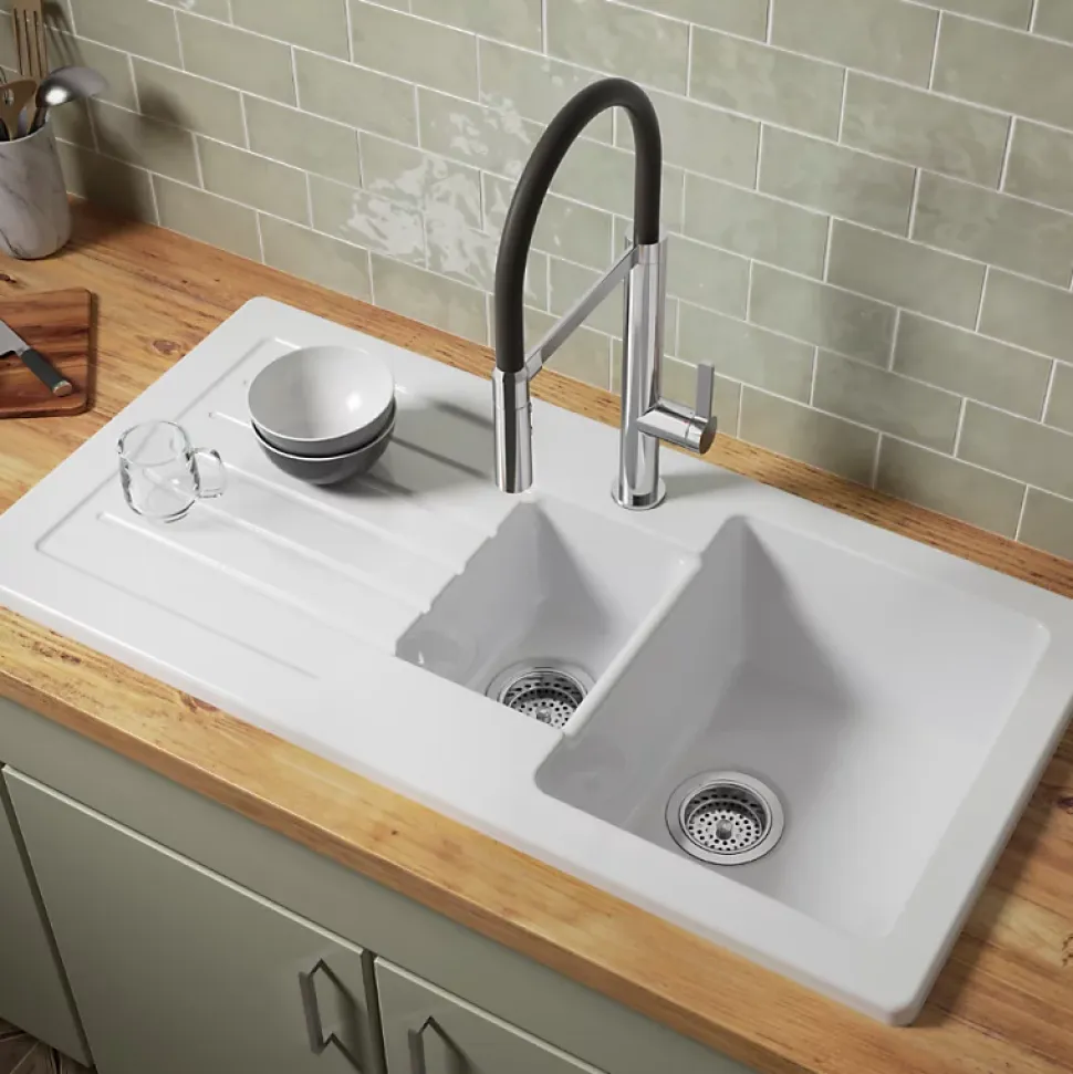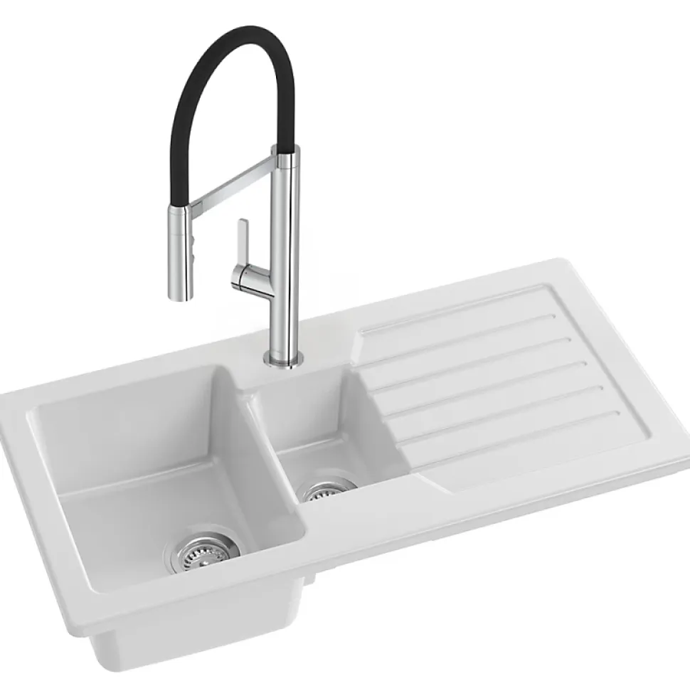 Avantages de votre évierÉvier fonctionnelÉgouttoir pratiqueÉvier réversibleMatériau durable : céramique résistanteEvier garantie de 10 ansInstallation aisée : conçu pour être encastré sur un plan de travail, cet évier s’intègre facilement dans un meuble sous-évier d’au moins 60 cm de largeur.Caractéristiques techniques votre évier Dimensions : 100 x 50 cmPoids : 29,5 kgMatériau : CéramiqueType d’installation : Encastré par-dessusPré-perçage robinetterie : 2 trous pré-percésTrop-plein : Non inclusNombre de vasques : 1,5 cuvesConvient pour un meuble de 60 cm de largeur minimumPoints forts du Robinet cuisine RaphaëlDesign moderne et élégantGrande hauteur sous becBras souple en siliconeBec rotatif à 360°Mitigeur pratique : doté d’un bras pivotantDouchette à trois jetsCaractéristiques techniques du robinetDimensions : 12,70 x 21,50 cmType d’Installation : 1 trouTypeDébit : 7 l/mnHauteur Totale : 448 mmSaillie du Bec : 230 mmRaccords : Avec flexibles d’alimentationMécanisme : Cartouche à disques céramiqueGarantie Mécanisme : 5 ansGarantie Finition : 10 ansEntretien Facile : Aérateur anti-calcaireMaintien Précis : Douchette avec fixation magnétiqueFonctionnalités Pratiques : Douchette 3 fonctions (jet classique, jet concentré, pause)Confort d’Utilisation : Bras souple pivotant à 360°Économie d’Ea: Débit limité à 7 l/mn