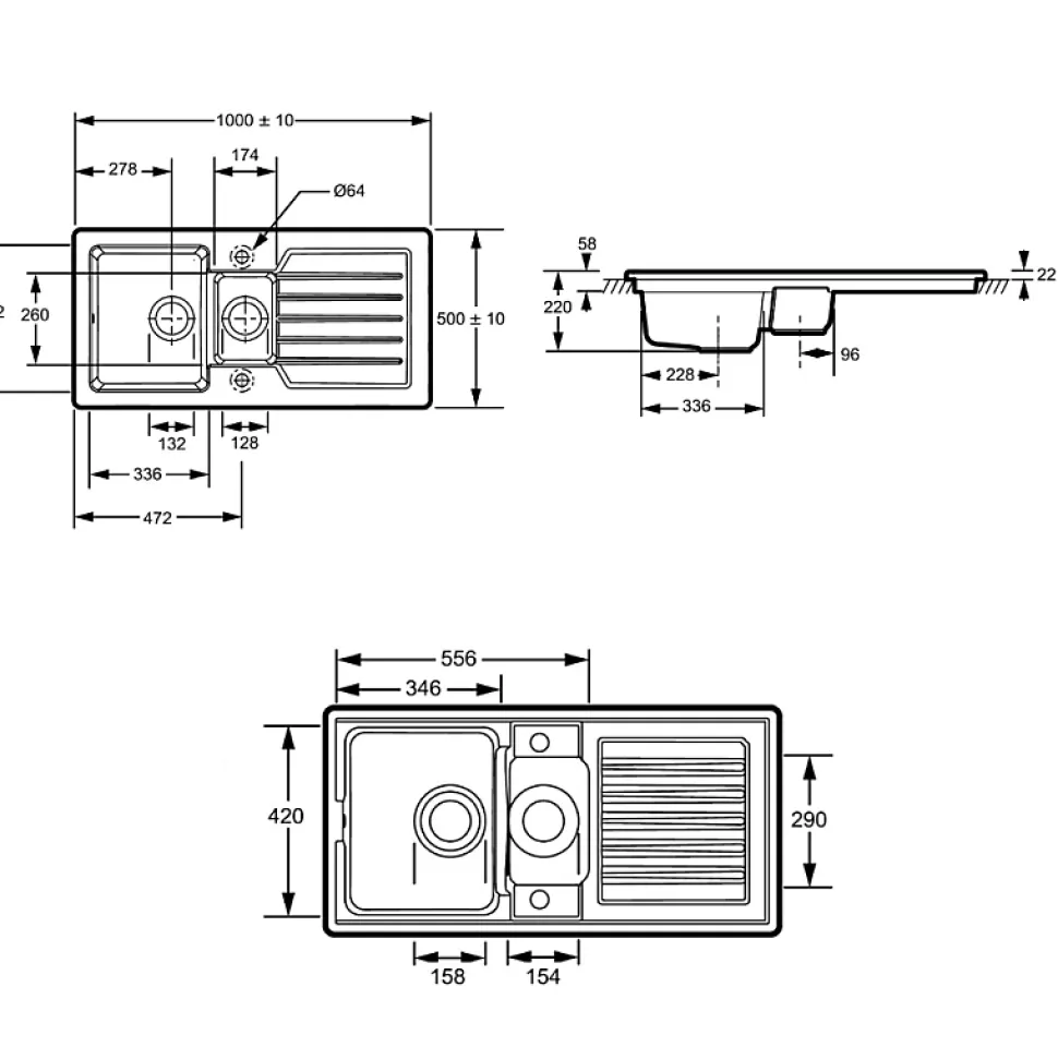 - Spacieux bac principal : Offre suffisamment d’espace pour les tâches quotidiennes telles que la vaisselle et la préparation des repas.