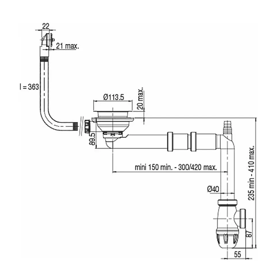 - Bac et demi : Comprend une cuve principale généreuse et une cuve plus petite parfaite pour le rinçage et le pré-triage des ustensiles.