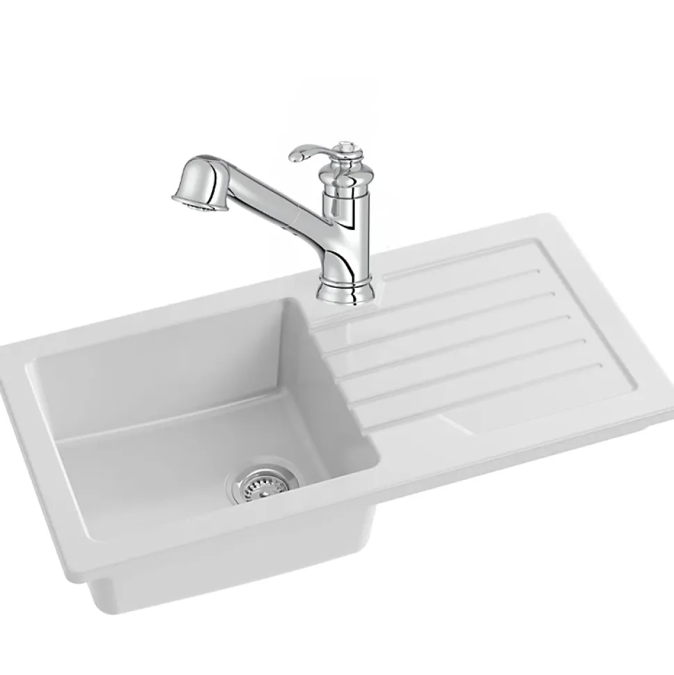 Avantages de votre évierÉvier fonctionnelÉgouttoir pratiqueÉvier réversibleMatériau durable : céramique résistanteEvier garantie de 10 ansInstallation aisée : conçu pour être encastré sur un plan de travail, cet évier s’intègre facilement dans un meuble sous-évier d’au moins 60 cm de largeur.Caractéristiques techniques votre évier Dimensions : 100 x 50 x 22 cmPoids : 29,5 kgMatériau : CéramiqueType d’installation : À encastrer sur un plan de travailLargeur du meuble sous-évier : Minimum 60 cmConfiguration : RéversiblePerçage robinetterie : 1 trouFinition : MeuléTrop-plein : Avec trou de trop-pleinNombre de cuves : 1,5 (1 cuve principale et 1 cuve secondaire)Garantie : 10 ansInformations complémentaires : Vidage non inclusPoints forts de votre Mitigeur cuisine avec douchette extractible FairfaxDesign Unique 100 % Origine FranceEconomie d’Eau et d’EnergieDouchette extractible avec deux jets, jet pluie et jet aéré.Certification NFFinition Chrome Anti-corrosionCaractéristiques techniques de votre MitigeurType d’Installation : Mitigeur monotrouRotation du Bec : Pivotant sur une zone de rotation de 90°Douchette Extractible : 2 jets disponibles : jet pluie et jet aéréRayon d’Action de la Douchette : Impressionnant rayon de 700 mmFinition : Chrome, anti-corrosion et résistantDébit Limité : Économisez l’eau avec un débit limité à 7 l/mnMécanisme : Cartouche à disques céramique/p>Filtres Anti-calcaires Intégrés : Pour une eau toujours propreRaccords d’Alimentation Inclus : Facilite l’installationHauteur Maximale du Robinet : 212 mmPoids : 2,60 KgRéférence : E76091-CP