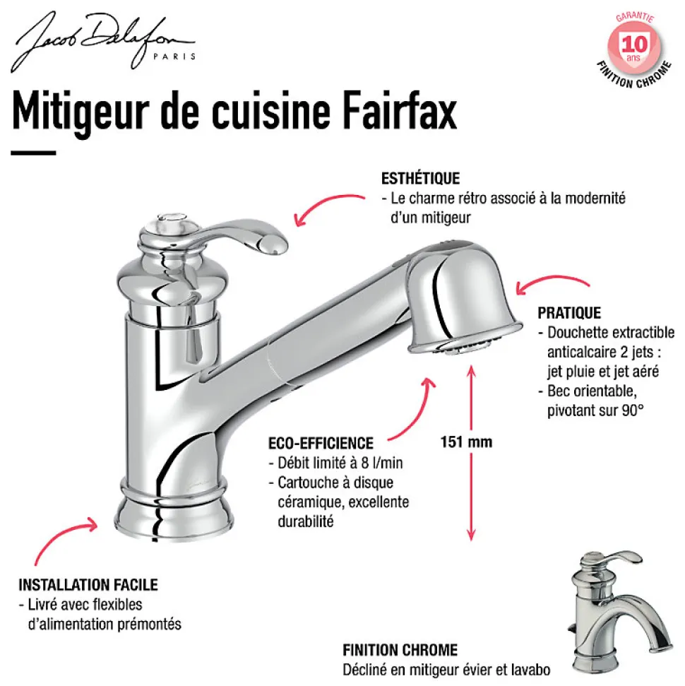- Design Unique 100 % Origine France : Le Mitigeur Fairfax incarne l’élégance à la française, ajoutant une touche de sophistication à votre cuisine.
