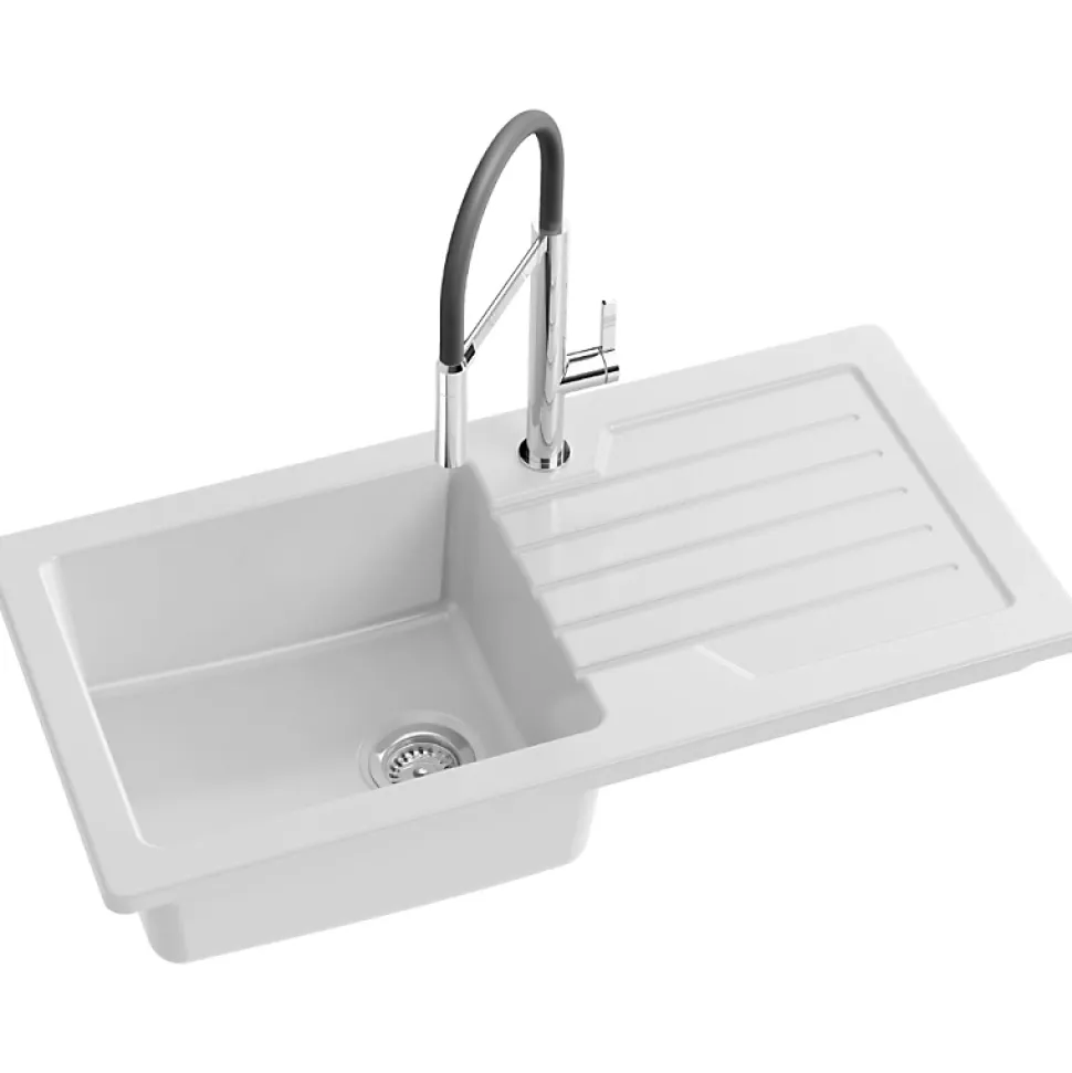 Avantages de votre évierÉvier fonctionnelÉgouttoir pratiqueÉvier réversibleMatériau durable : céramique résistanteEvier garantie de 10 ansInstallation aisée : conçu pour être encastré sur un plan de travail, cet évier s’intègre facilement dans un meuble sous-évier d’au moins 60 cm de largeur.Caractéristiques techniques votre évier Dimensions : 100 x 50 x 22 cmPoids : 29,5 kgMatériau : CéramiqueType d’installation : À encastrer sur un plan de travailLargeur du meuble sous-évier : Minimum 60 cmConfiguration : RéversiblePerçage robinetterie : 1 trouFinition : MeuléTrop-plein : Avec trou de trop-pleinNombre de cuves : 1,5 (1 cuve principale et 1 cuve secondaire)Garantie : 10 ansInformations complémentaires : Vidage non inclusPoints forts du Robinet cuisine RaphaëlDesign moderne et élégantGrande hauteur sous becBras souple en siliconeBec rotatif à 360°Mitigeur pratique : doté d’un bras pivotantDouchette à trois jetsCaractéristiques techniques du robinetDimensions : 12,70 x 21,50 cmType d’Installation : 1 trouTypeDébit : 7 l/mnHauteur Totale : 448 mmSaillie du Bec : 230 mmRaccords : Avec flexibles d’alimentationMécanisme : Cartouche à disques céramiqueGarantie Mécanisme : 5 ansGarantie Finition : 10 ansEntretien Facile : Aérateur anti-calcaireMaintien Précis : Douchette avec fixation magnétiqueFonctionnalités Pratiques : Douchette 3 fonctions (jet classique, jet concentré, pause)Confort d’Utilisation : Bras souple pivotant à 360°Économie d’Ea: Débit limité à 7 l/mn