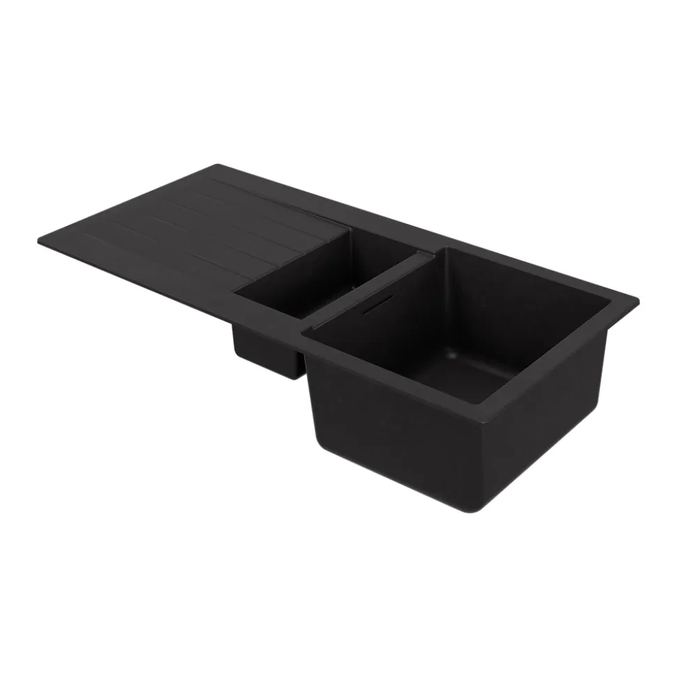 Evier à encastrer en composite quartz noir 1,5 bacs et égouttoir l. 50 x H. 30,4 x P. 19,7 cm GoodHome Torla