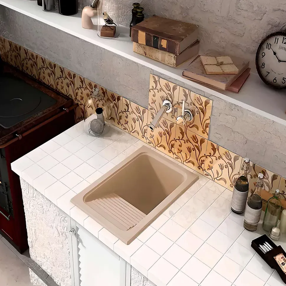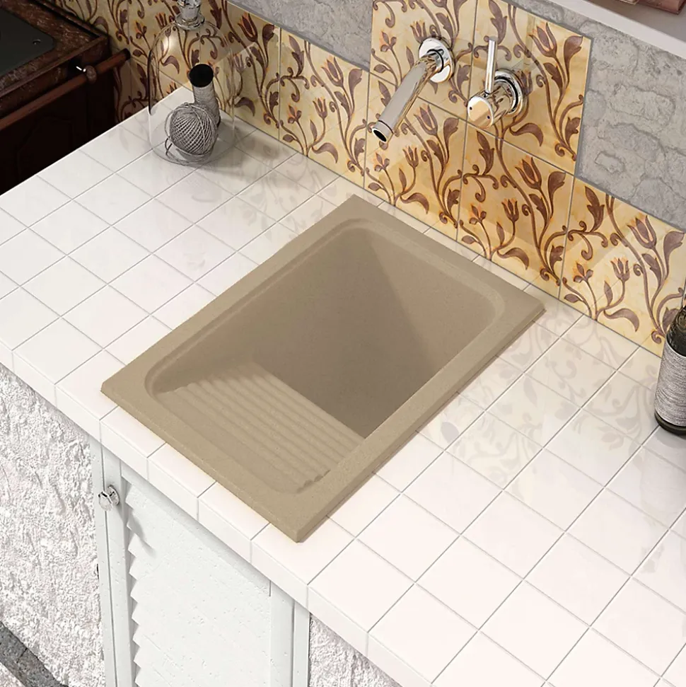 Evier Bac à laver pour buanderie à encastrer Poalgi Silex Albero – 1 bac + égouttoir