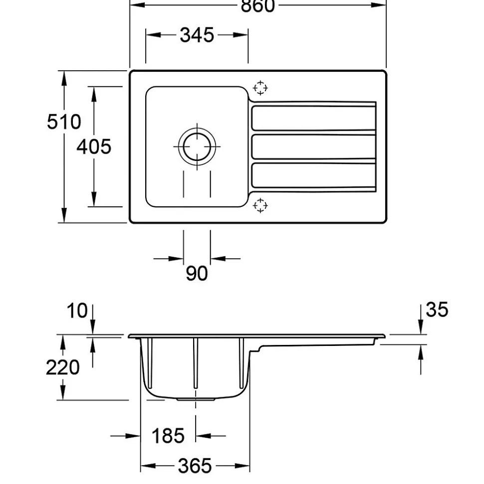 - Évier encastrable 86×51 cm