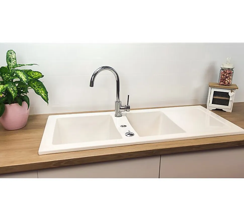 L’évier céramique Lingot blanc 2 cuves + égouttoir de Sarreguemines est la pièce maîtresse idéale pour votre cuisine. Conçu par le spécialiste français de la céramique, cet évier allie design élégant et fonctionnalité optimale. Avec ses dimensions de 1120x490x240 mm, il s’intègre parfaitement dans votre plan de travail tout en offrant un espace de travail généreux. La céramique de haute qualité utilisée pour sa fabrication garantit une durabilité exceptionnelle et une résistance aux taches, aux produits chimiques et à la corrosion. Son design sobre et sa couleur blanche immaculée lui permettent de s’harmoniser avec tous les styles de cuisine, du plus classique au plus contemporain.