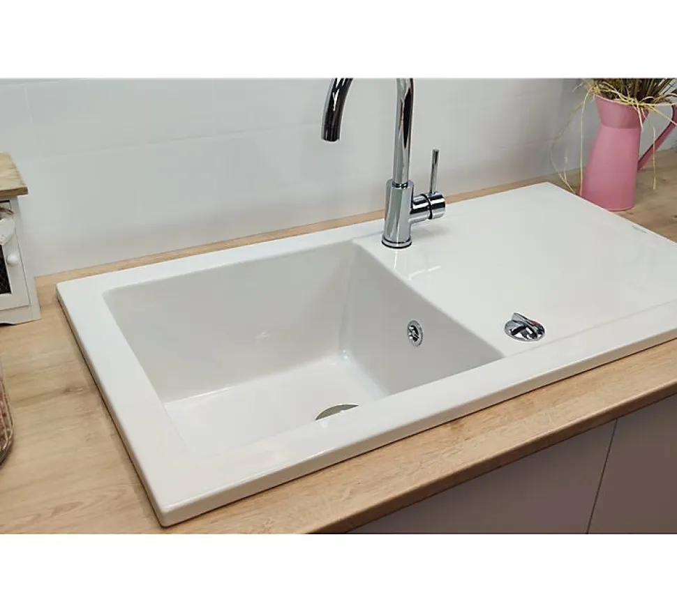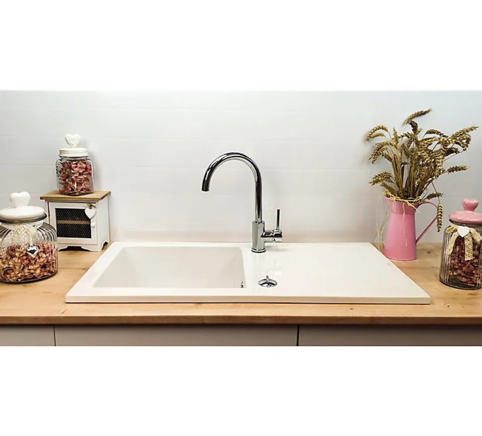 L’évier céramique Lingot XS de Sarreguemines se distingue par son design contemporain aux lignes épurées. Sa couleur blanche immaculée s’intègre harmonieusement dans tous les styles de cuisine, du plus classique au plus moderne. Avec ses dimensions compactes de 920x490x220 mm, il est parfaitement adapté aux petits espaces sans pour autant sacrifier le confort d’utilisation. La cuve spacieuse et profonde offre un volume généreux, tandis que l’égouttoir intégré facilite le séchage de la vaisselle. Ce modèle réversible vous laisse le choix du sens d’installation pour s’adapter au mieux à votre agencement.