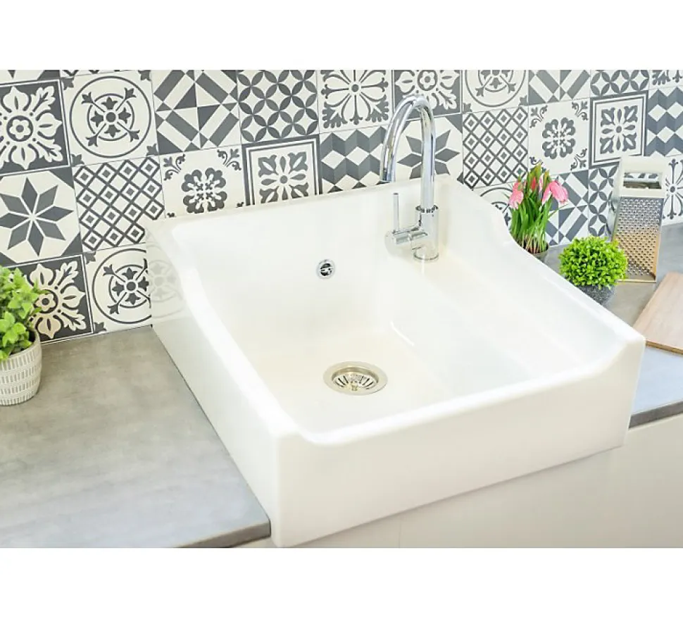 Un évier céramique au charme d’antanRedécouvrez le charme des cuisines d’autrefois avec cet évier céramique au style timbre d’office. Son grand bac unique de 60 cm de large offre un espace généreux pour la vaisselle, tout en apportant une touche vintage à votre décor. La céramique blanche immaculée s’accorde parfaitement avec une décoration rétro ou contemporaine, pour un rendu à la fois élégant et authentique. Cet évier de cuisine encastrable allie esthétisme et praticité. Son design épuré facilite le nettoyage, tandis que la céramique de haute qualité résiste aux taches et aux rayures. Vous apprécierez son côté fonctionnel au quotidien, sans compromis sur le style.