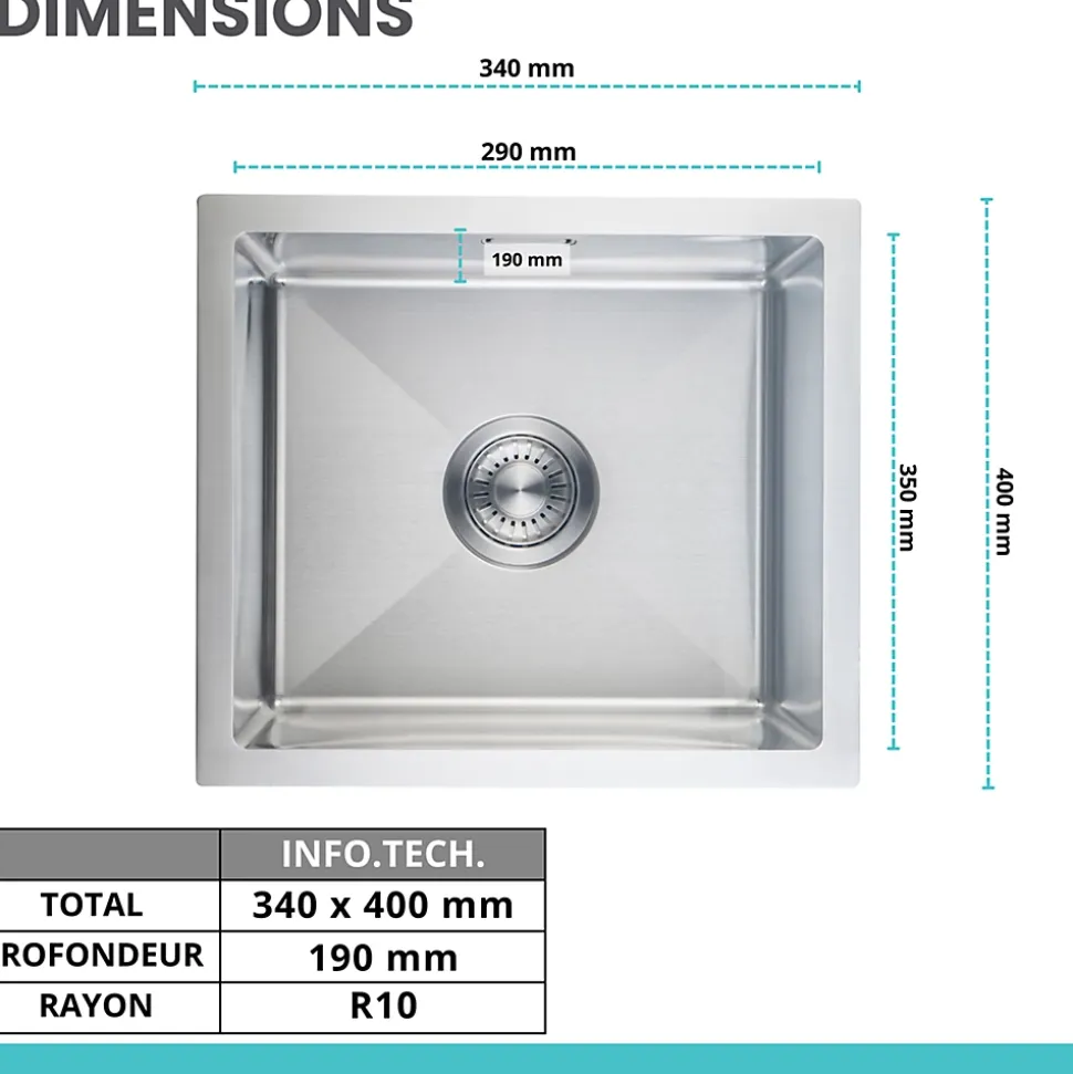 - L’Evier profond de 20 cm offre un espace supplémentaire pour la vaisselle