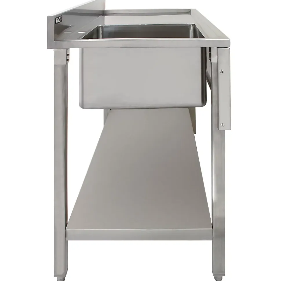 Cet évier commercial et son robinet de pré-rinçage sont un must absolu pour toute cuisine de traiteur cherchant à garder tout propre !Le spacieux égouttoir de droite vous permet de tout faire sécher, des couverts aux assiettes en passant par les casseroles et les poêles. De plus, l’évier en acier inoxydable KuKoo est facile à nettoyer et fera l’effet d’une véritable cuisine commerciale. Ce robinet de pré-rinçage comprend un tuyau flexible en acier de 96cm avec une valve de contrôle de l’eau de 22cm et un débit de 1,42 GPM, ce qui permet de l’extraire facilement et de le pulvériser à travers différents compartiments. De plus, le robinet d’appoint de 31cm peut être utilisé séparément, pour remplir l’évier et compléter votre lavage – ce qui rend ce robinet de cuisine commerciale idéal pour tous les usages. Utilisez le support mural de 31cm inclus pour fixer facilement au mur le tuyau flexible à col d’oie et le robinet à action de ressort, et fixez-le à l’évier en acier inoxydable à l’aide du double socle.Caratéristiques de l’évier de restauration: Vidangeur de la main droite incliné pour aider à évacuer la mousse et l’eau, rapidement ! 1.0 bol simple à gauche Construit en acier inoxydable de qualité 201, qui est robuste et facile à nettoyer Une solide étagère inférieure offre beaucoup d’espace de rangement pour le matériel et les accessoires de nettoyage Les pieds réglables permettent de maintenir l’évier droit sur les sols irréguliers Une hauteur de 120 mm empêche tout ce qui tombe derrière le lavabo Emballage à plat pour faciliter le montage Un trou de robinet Chiffons en microfibres GRATUITS GRATUIT 2 x bouchons de crépine Mesure 120cm de large x 60cm de profondeur x 90cm de hauteur (la hauteur de travail exclut la position debout)Caractéristiques du robinet de pulvérisation