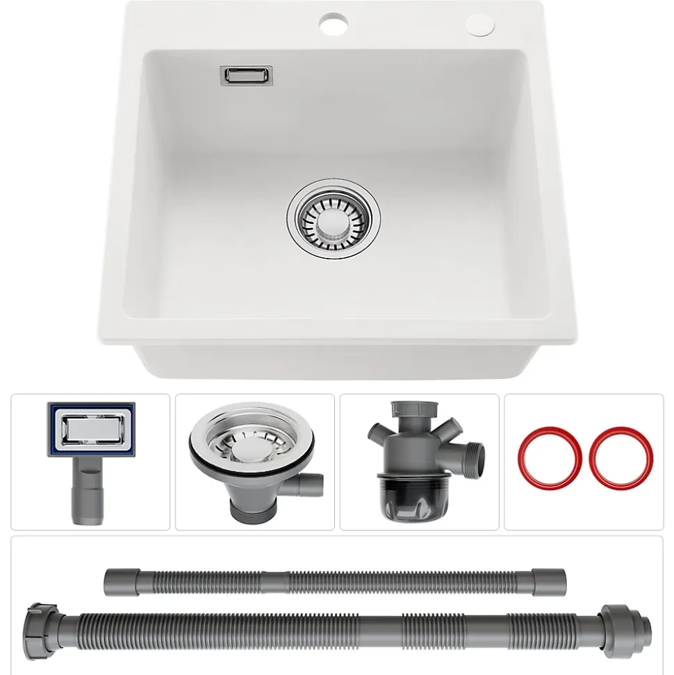 Cet évier de cuisine en quartz (80% quartz + 20% résine) allie élégance, robustesse et fonctionnalité. Avec ses dimensions compactes (50×45×20 cm) et son installation sur plan, il s’intègre parfaitement dans les petites et moyennes cuisines. Sa structure dense et non poreuse, fabriquée sous haute pression, résiste aux chocs, aux températures élevées et aux taches, tout en restant facile à nettoyer. Certifié TUV pour le contact alimentaire, il garantit une hygiène irréprochable. Doté d’un design à angles R2, d’une pente intégrée et d’un trop-plein, il maximise la capacité utile et simplifie l’entretien. Le système de drainage anti-odeurs et la sortie supplémentaire pour lave-vaisselle en font un choix pratique et durable.