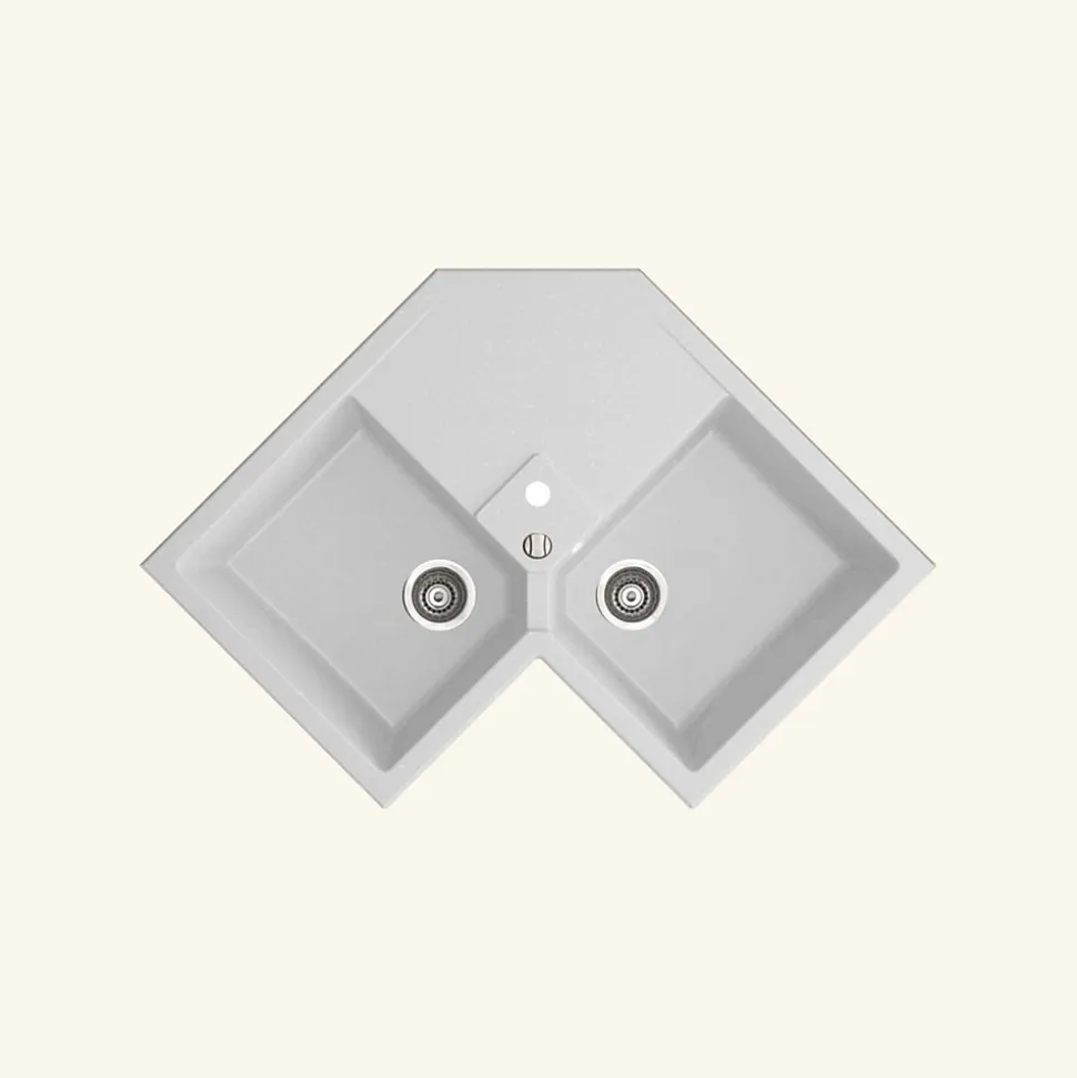 POINTS FORTS : • Évier encastrable 83×83 cm • • Evier vidage automatique • • Meuble sous évier 90 cm minimum • • Évier d’angle CARACTÉRISTIQUES : • Équipements inclus : bonde(s), siphon, trop plein, tuyaux d’évacuation • Marque : Kümbad • Matériau : Granit • Type de pose : à encastrer • Positionnement égouttoir : sans égouttoir • Coloris : Blanc • Emplacement robinetterie : percé • Nombre de bacs : 2 bacs • Poids net (Kg) : 21.4 • Trop plein : oui • Sous-meuble : 90 cm • Longueur (mm) : 830 • Largeur (mm) : 830 • Longueur d’encastrement (mm) : non disponible • Largeur d’encastrement (mm) : • Grande dimension cuve 1 (mm) : 434 • Petite dimension cuve 1 (mm) : 360 • Profondeur cuve 1 (mm) : 200 • Diamètre bonde cuve 1 (mm) : 90 • Grande dimension cuve 2 (mm) : 434 • Petite dimension cuve 2 (mm) : 360 • Profondeur cuve 2 (mm) : 200 • Diamètre bonde cuve 2 (mm) : 90 • Bon à savoir : ce produit ne présente pas de spécificités supplémentaires • Vidage : automatique • Référence vidage : le vidage est déjà inclus