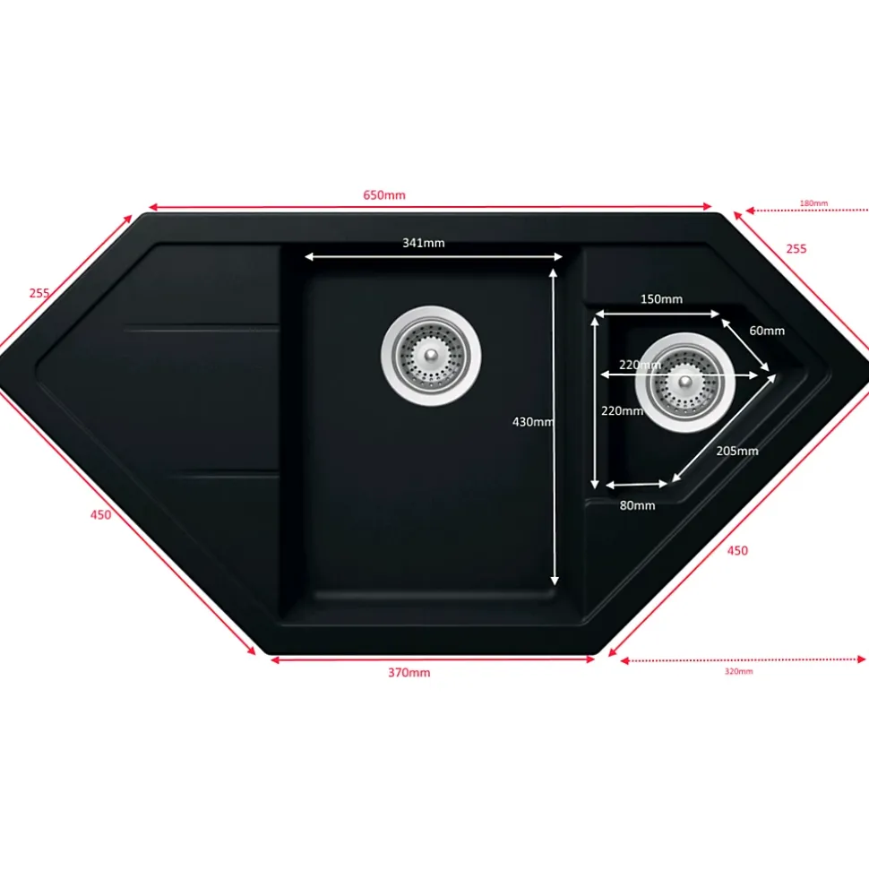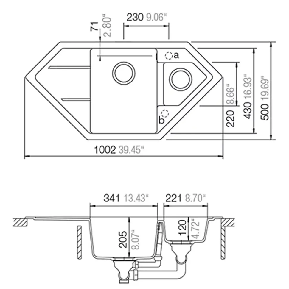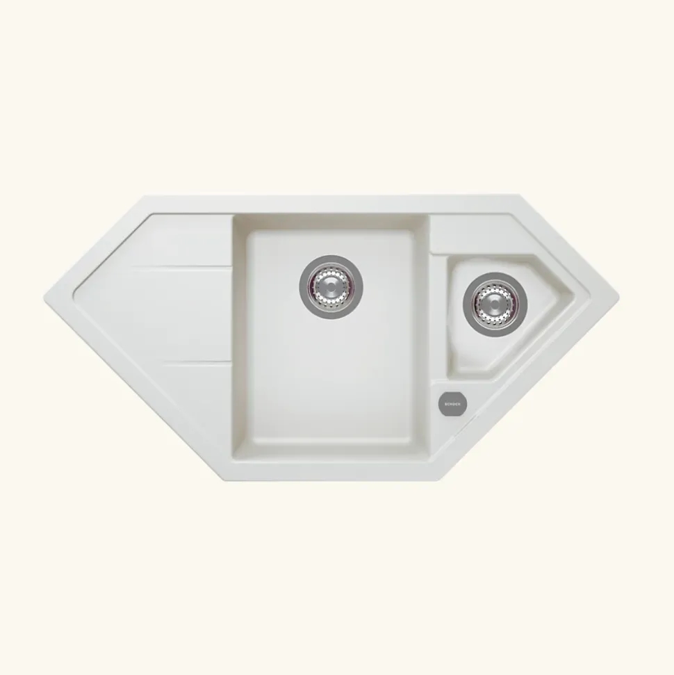 POINTS FORTS : • Évier encastrable 100×50 cm • • Evier vidage automatique • • Meuble sous évier 80 cm minimum • • Évier non réversible fabriqué en Allemagne CARACTÉRISTIQUES : • Équipements inclus : bonde(s), siphon, tuyaux d’évacuation • Marque : Schock • Matériau : Granit • Type de pose : à encastrer • Positionnement égouttoir : gauche • Coloris : Blanc • Emplacement robinetterie : percé • Nombre de bacs : 1 bac 1/2 • Poids net (Kg) : 12.5 • Trop plein : non • Sous-meuble : 80 cm • Longueur (mm) : 1002 • Largeur (mm) : 500 • Longueur d’encastrement (mm) : 984 • Largeur d’encastrement (mm) : 480 • Grande dimension cuve 1 (mm) : 430 • Petite dimension cuve 1 (mm) : 341 • Profondeur cuve 1 (mm) : 205 • Diamètre bonde cuve 1 (mm) : 90 • Grande dimension cuve 2 (mm) : 221 • Petite dimension cuve 2 (mm) : 220 • Profondeur cuve 2 (mm) : 120 • Diamètre bonde cuve 2 (mm) : 90 • Bon à savoir : 1 trou pour le robinet et 1 pré-marquage pour la manette • Vidage : automatique • Référence vidage : le vidage est déjà inclus