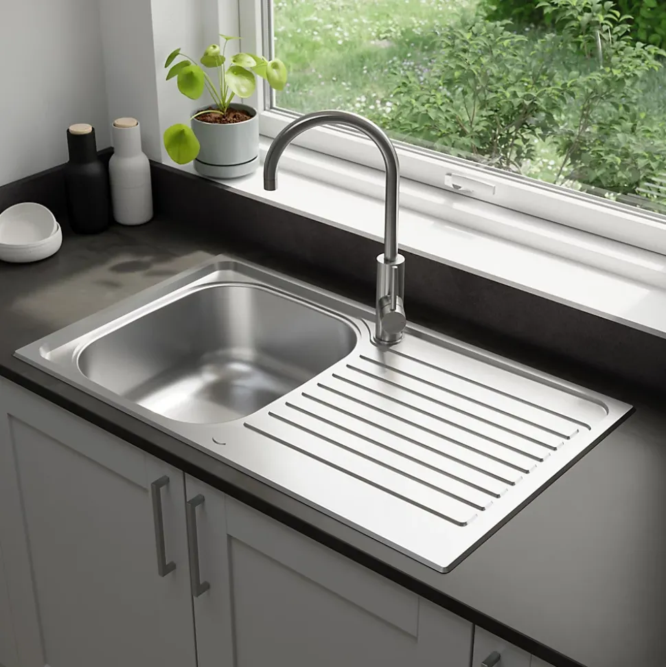 Évier de cuisine 1 cuve et 1 égouttoir en acier inoxydable Jabiri
