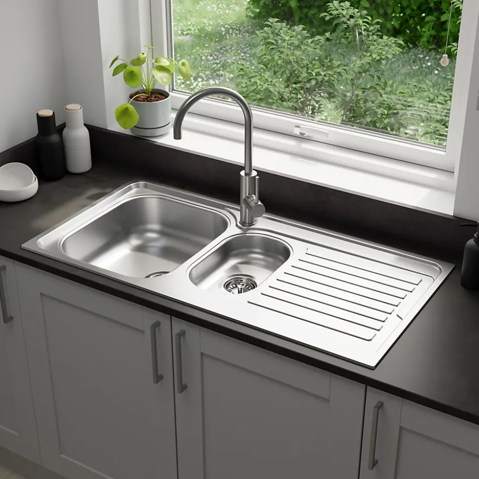 Évier de cuisine 1,5 cuve et 1 égouttoir en acier inoxydable Jabiri
