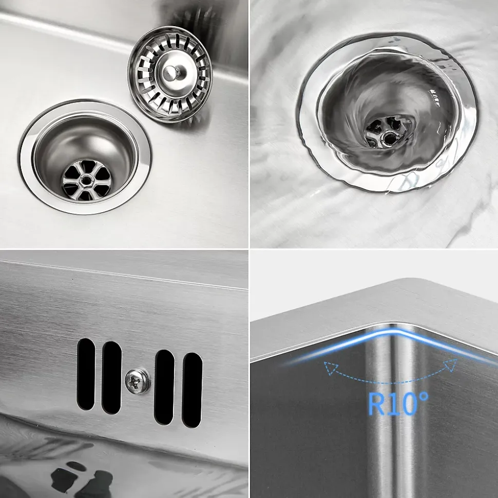 Ce bac de cuisine en acier inoxydable SUS304 de qualité alimentaire allie élégance et durabilité. Avec des dimensions de 50*43*19 cm (bac intérieur : 45*38*18,5 cm), il s’installe facilement en pose dessus, encastrée ou sous plan (recommandée), nécessitant un meuble d’au moins 50 cm. Fabriqué artisanalement par soudure laser, il offre une robustesse exceptionnelle (panneau de 3,0 mm, bac de 0,7 mm) et une surface anti-rayures et anti-taches grâce à son fini brossé. Ses fonctionnalités intelligentes incluent un angle R optimisé pour un nettoyage facile, une bonde à 360° réglable, une couche anti-condensation et une isolation EVA pour réduire le bruit de l’eau, garantissant hygiène et confort au quotidien.