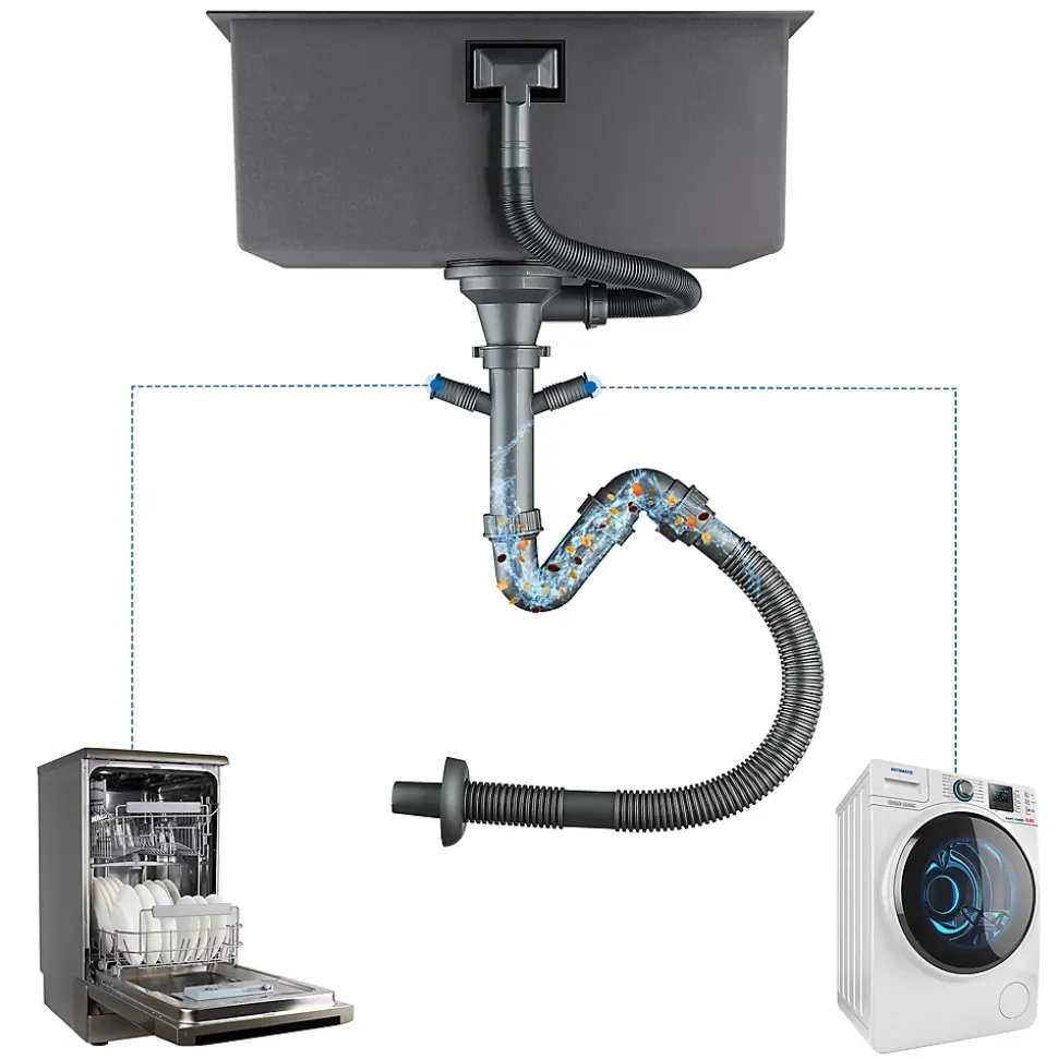 - ✔ Design pratique : Angle R élargi pour un nettoyage facile et bonde orientable à 360° pour gain de place.