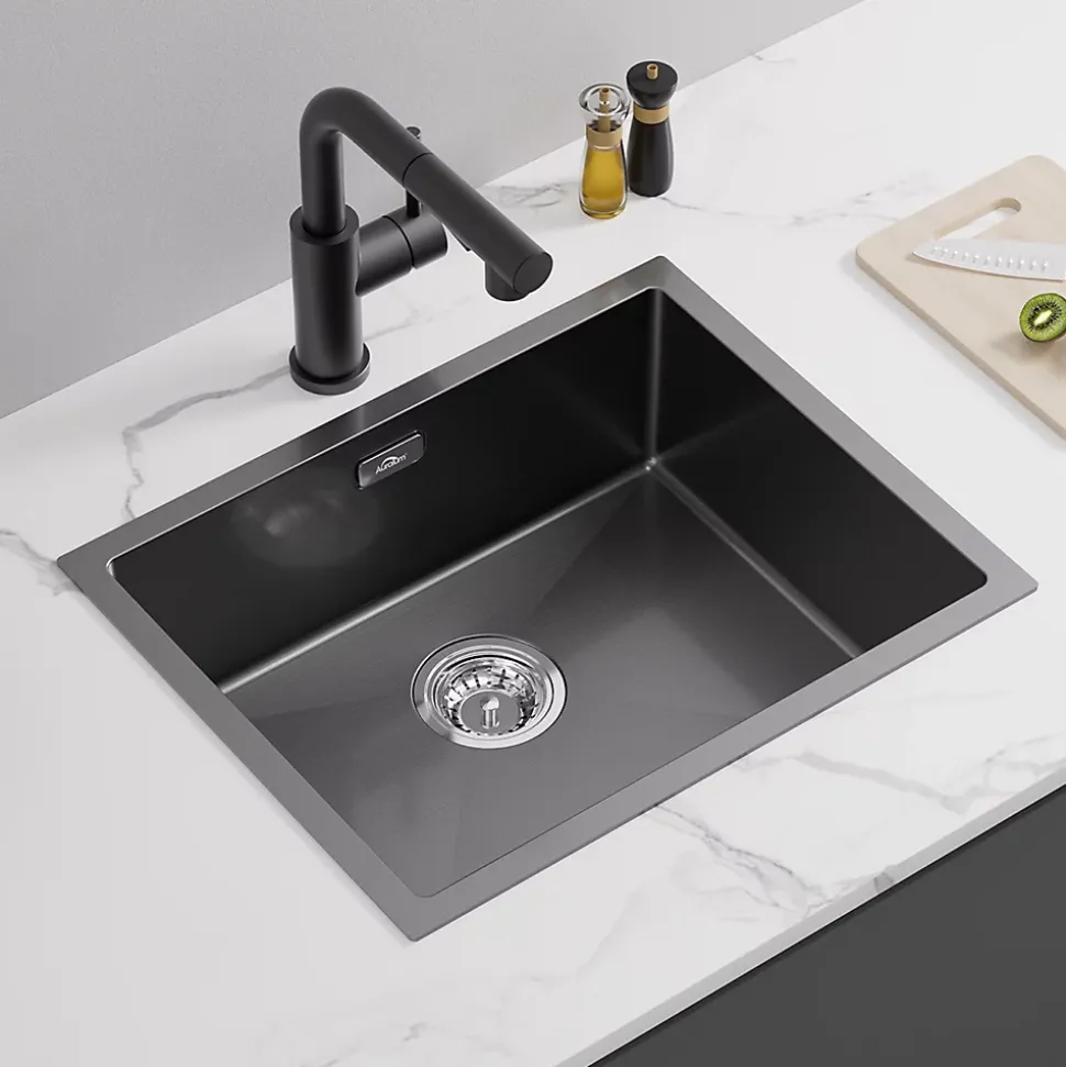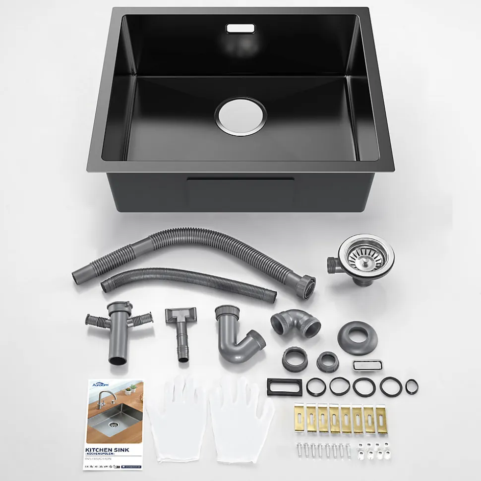 Ce bac de cuisine en acier inoxydable 304 (fini brossé) allie durabilité, fonctionnalité et élégance. Avec ses dimensions généreuses (55×44×19 cm, bac intérieur : 50×39×18 cm), il offre une grande capacité et s’installe facilement en pose dessus, encastrée ou sous plan (recommandée), adapté aux meubles de 60 cm minimum. Son design intelligent inclut un angle R optimisé pour un nettoyage facile, un système anti-débordement discret, une bonde orientable à 360° et un siphon anti-odeurs avec raccords supplémentaires pour lave-vaisselle. La structure renforcée (3 mm d’épaisseur, fond anti-condensation et isolation EVA) assure silence, résistance aux chocs et une hygiène parfaite grâce à son écoulement rapide et sa surface anti-traces.