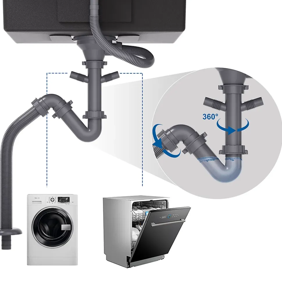 - ✔ Fonctions anti-débordement & anti-odeurs – Bonde à 2 raccords (lave-vaisselle) + siphon étanche aux insectes.