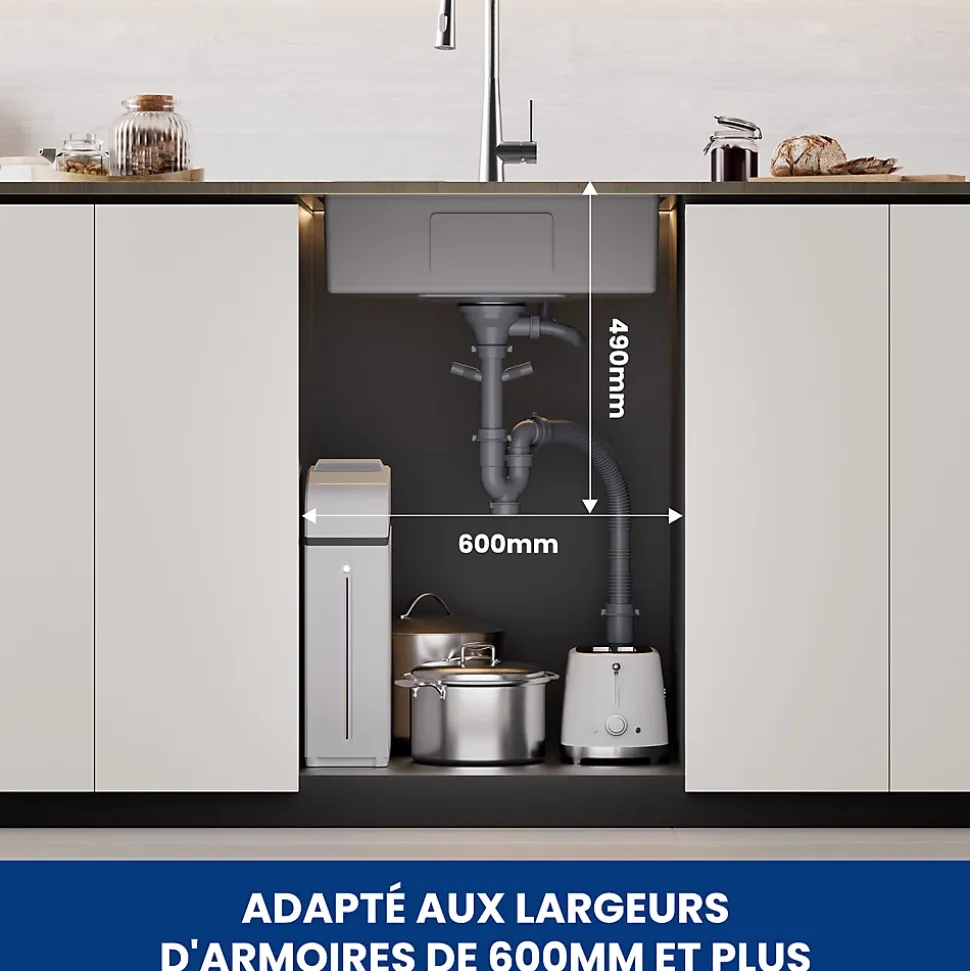 - ✔ Installation flexible : Compatible pose sur/sous plan, avec tuyau de drainage rotatif à 360° pour s’adapter à votre espace.